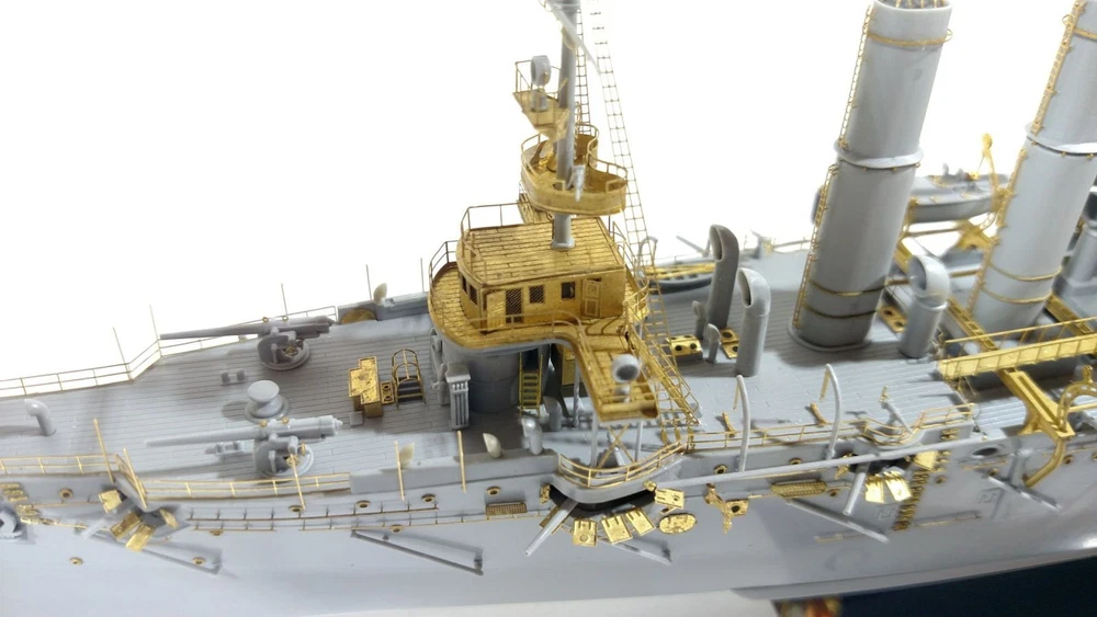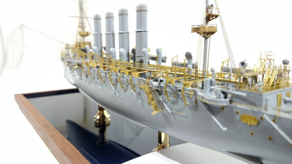 Enhance the realism of your model with high-quality photo-etching from Microdesign! Set Features Manufacturer: Microdesign Compatibility: RIF Cruiser "Varyag" by Zvezda (Art. 9014) Scale: 1:350 Material: Brass sheets, 0.17 and 0.12 mm thick Contents: 4 photo-etching plates Color instruction manual Number of unique parts: 213 pcs Advantages High detail: Add 213 unique parts to your model for maximum accuracy. Quality materials: Brass plates provide durability and ease of use. Easy to use: Step-by-step color instructions help you install all elements effortlessly. Please Note The assembly model is not included. The set provides only photo-etched parts to enhance the cruiser model. Item location: USA. Fast shipping: The item will be shipped immediately after payment. Historical Background of the Cruiser "Varyag" The first-rank cruiser "Varyag" was built in the USA at the William Cramp & Sons shipyard by order of the Russian Imperial Navy and was commissioned in 1901. It became a symbol of heroism due to its participation in the unequal battle at the Korean port of Chemulpo on February 9, 1904, at the beginning of the Russo-Japanese War. Together with the gunboat "Koreets," "Varyag" engaged in battle against superior Japanese naval forces. Despite severe damage and casualties, the crew decided to scuttle the ship to prevent it from falling into enemy hands. The feat of "Varyag" and its crew has forever entered history as an example of courage and self-sacrifice. Order Now! Don't miss the opportunity to turn your model of the cruiser "Varyag" into a true masterpiece. Order the photo-etching set from Microdesign today and give your model unparalleled realism!