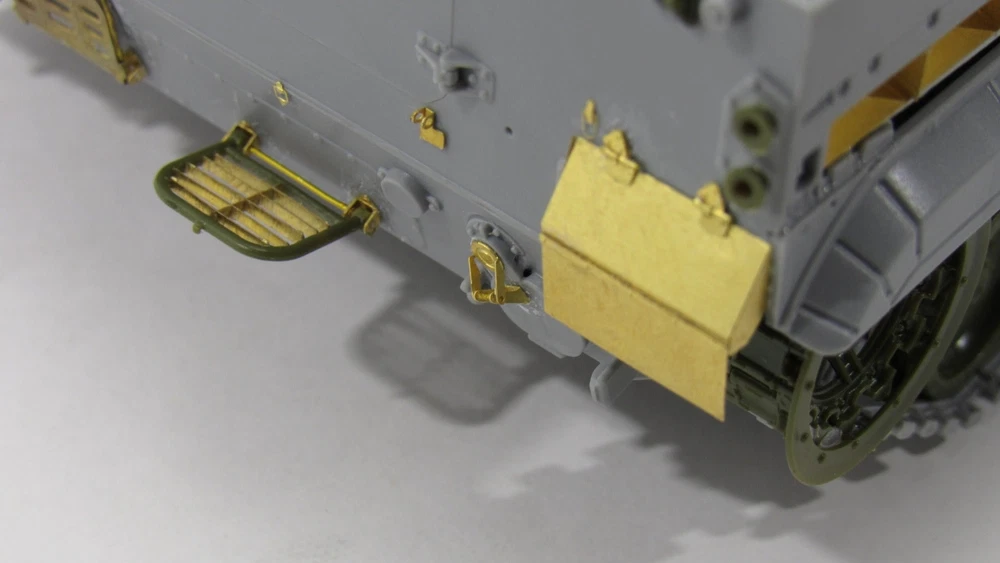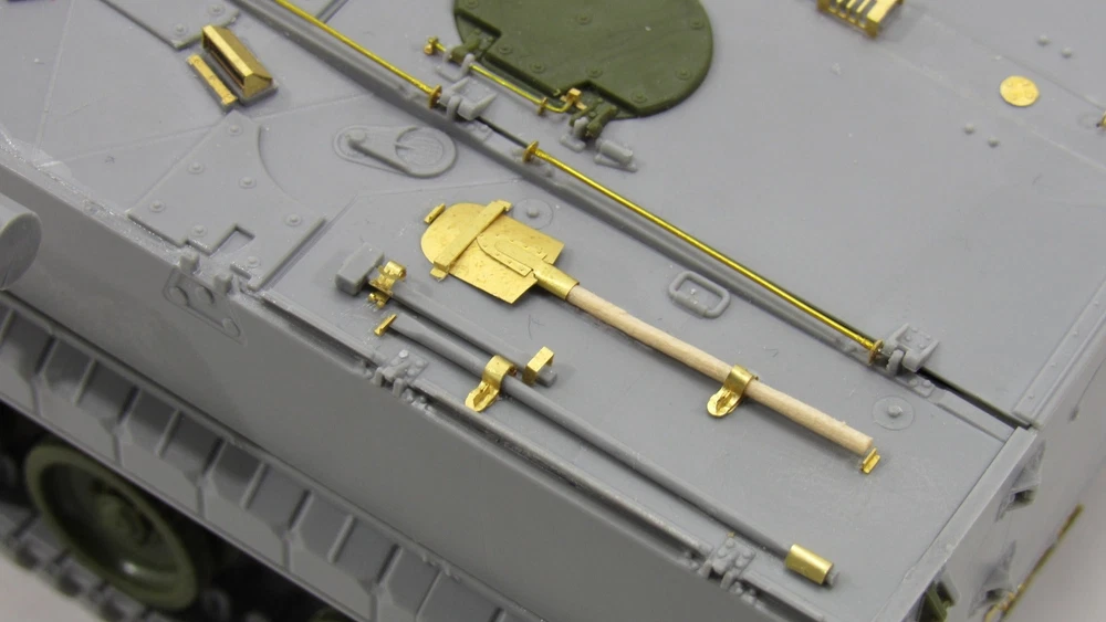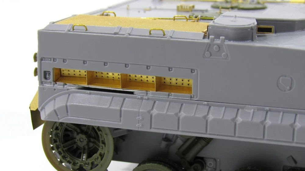 Enhance the detail and accuracy of your Russian tank BMP-3 (Zvezda) model with our photo-etched detail set. Designed with precision and expertise, this set adds realistic and authentic features to your model, elevating it to a new level of authenticity. Upgrade your model today and impress with the utmost accuracy. MD 035526 Photo etching kit for BMP - 3 from the Zvezda. The scale is 1 : 35 . Material : brass 0.15 mm . The set is equipped with 2 photo etching boards and a color instruction . Number of unique parts : 173 pcs . The difficulty level is medium .