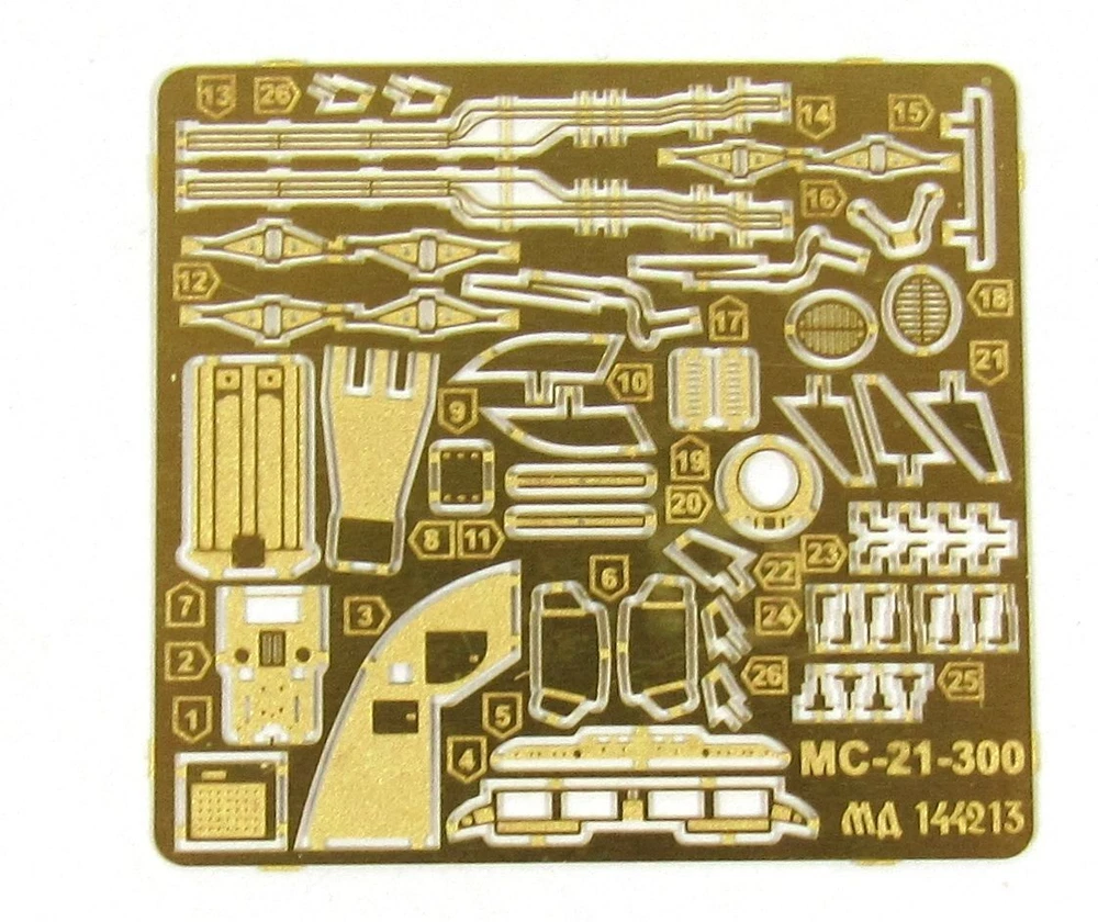 Upgrade your MS-21-300 b Zvezda 7033 1:144 model with our incredible photo-etched detailing set! This set includes a variety of pre-painted and pre-cut parts that will add incredible realism to your model. With this set, you can: Add delicate details that would be difficult or impossible to create with plastic parts. Enhance the look of your model with realistic textures and finishes. Make your model stand out from the crowd. Here are just a few of the features of our photo-etched detailing set: pre-cut parts for easy assembly Highly detailed parts that will add realism to your model Easy to follow instructions Made from high-quality materials Don't miss out on this opportunity to take your MS-21-300 b Zvezda 7033 1:144 model to the next level! Order your photo-etched detailing set today!