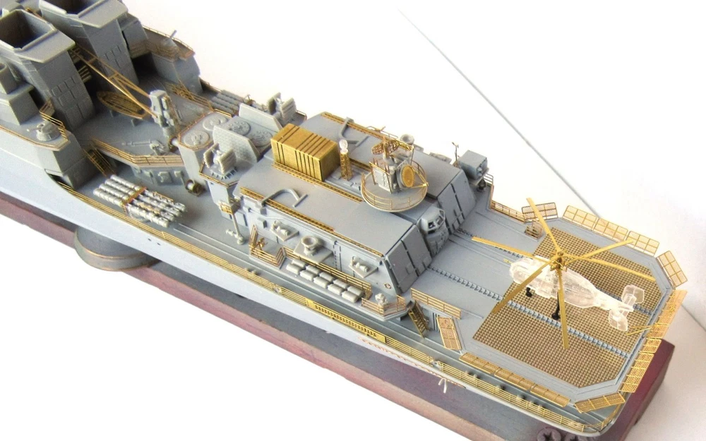 Enhance your model of the Russian Navy 'Udaloy' class Destroyer 'Admiral Chabanenko' with our photo-etched detailing set. Designed for use with p.1155/1155.1 (Trumpeter), this set adds realistic and accurate details to your build. Make your model stand out with this expertly crafted set.