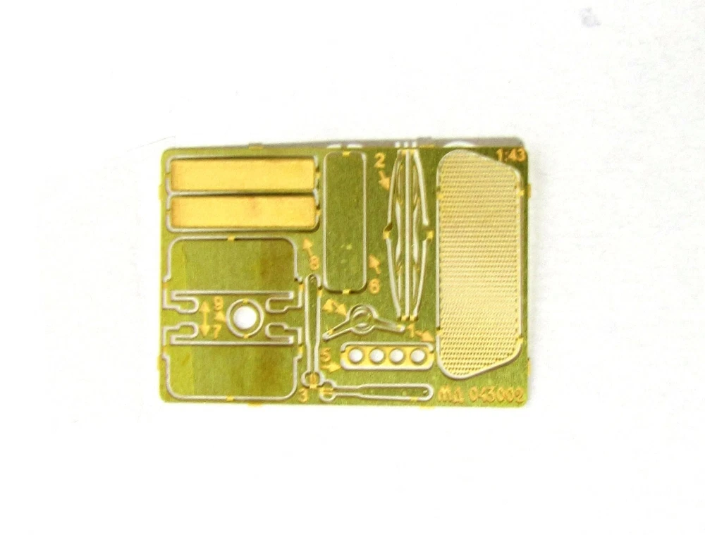 Enhance your UAZ-3909 model with our expertly crafted photo-etched set from Zvezda. Made with precision and detail in mind, this set will elevate the realism and accuracy of your model. Effortlessly transform your UAZ-3909 into a show-stopping masterpiece. MD 043002 Photo etching kit for UAZ - 3909 from the Star . Scale 1 : 43 . Material : brass 0.14 mm . The difficulty level is initial . The number of unique parts is 9 .