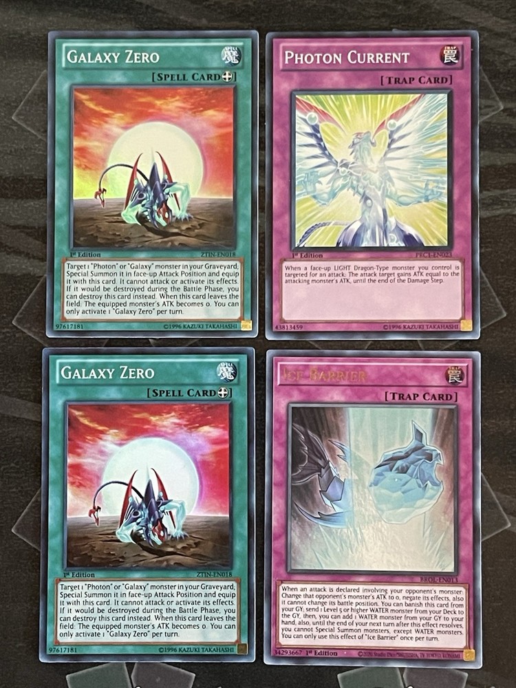 Power up your Yu-Gi-Oh! deck with this Photon & Galaxy archetype bundle! Featuring key monsters like Galaxy-Eyes Photon Dragon and Photon Wyvern, this set is perfect for collectors and competitive duelists alike. Whether you’re building a Galaxy-Eyes deck or expanding your collection, this lot has a mix of high-impact monsters, powerful spells, and essential Photon support! Included Cards: 🔹 Key Photon & Galaxy Cards: • Photon Wyvern (PRC1-EN015) - Secret Rare • Galaxy-Eyes Photon Dragon (LDS2-EN047) - Ultra Rare • Galaxy Knight (ZTIN-EN012) - Ultra Rare • Galaxy Wizard (ZTIN-EN011) - Ultra Rare • Photon Slasher (ZTIN-EN005) - Ultra Rare • Photon Slasher (ZTIN-EN008) - Ultra Rare • Photon Satellite (ZTIN-EN007) - Ultra Rare • Kuriphoton (ZTIN-EN009) - Ultra Rare • Photon Current (PRC1-EN023) - Ultra Rare 🔹 Extra Support Monsters & Spells: • Thought Ruler Archfiend (BROL-EN070) - Ultra Rare • Raviel, Lord of Phantasms (LC02-EN003) - Ultra Rare • Edea the Heavenly Squire (BROL-EN078) - Super Rare • Ice Knight (BROL-EN014) - Super Rare • Ice Barrier (BROL-EN013) - Ultra Rare • Exxod, Master of the Guard (SD7-EN001) - Super Rare • Nordic Beast Gullinbursti (BACH-EN011) - Super Rare • Grapha, Dragon Lord of Dark World (SDGU-EN001) - Ultra Rare 🔹 Photon Spell & Trap Support: • 2x Galaxy Zero (ZTIN-EN018) - Super Rare • 2x Photon Pirate (ZTIN-EN006) - Super Rare ✅ Great for building a Photon & Galaxy deck! ✅ Includes Ultra Rares & hard-to-find cards ✅ Perfect for casual or competitive play ✅ All cards are carefully packaged and shipped fast! Check out store for more Yu-Gi-Oh! singles, bundles, and playsets!