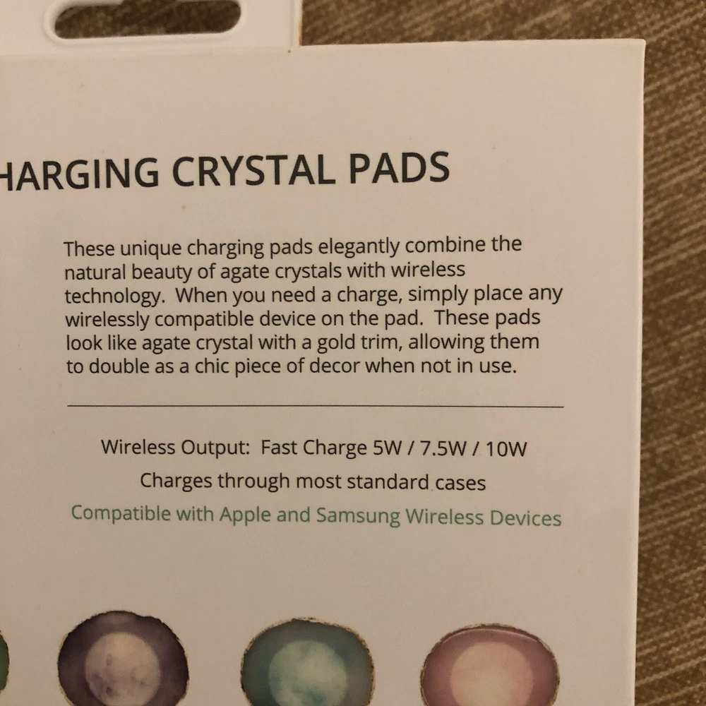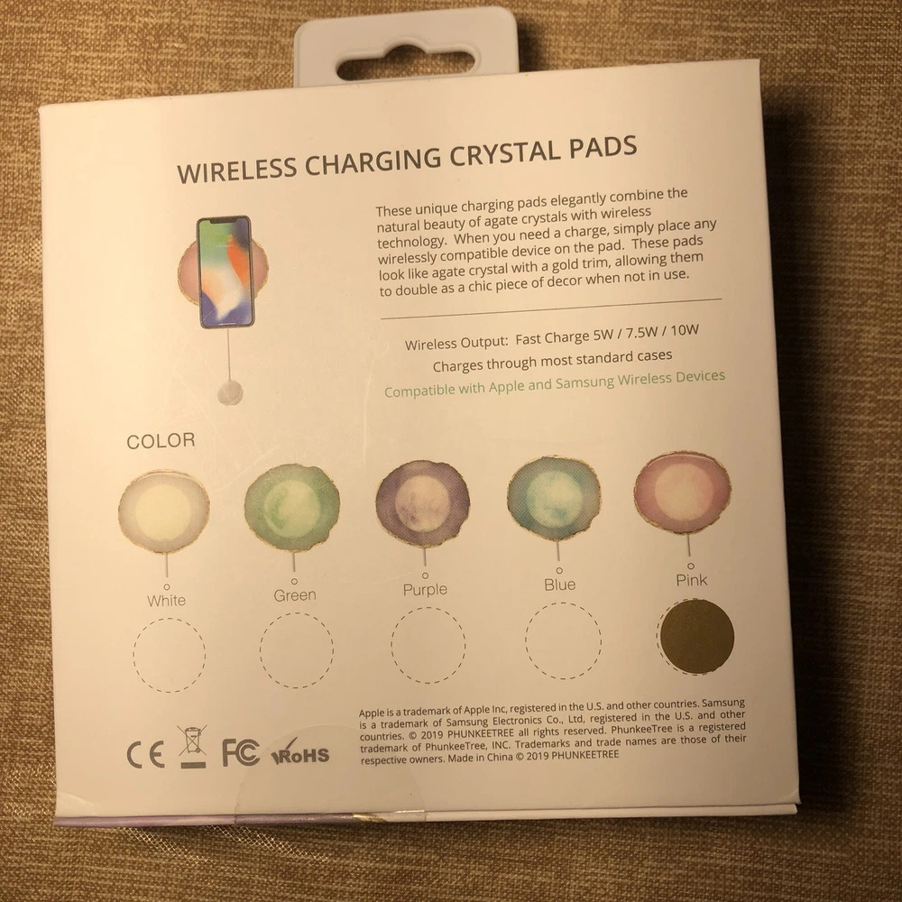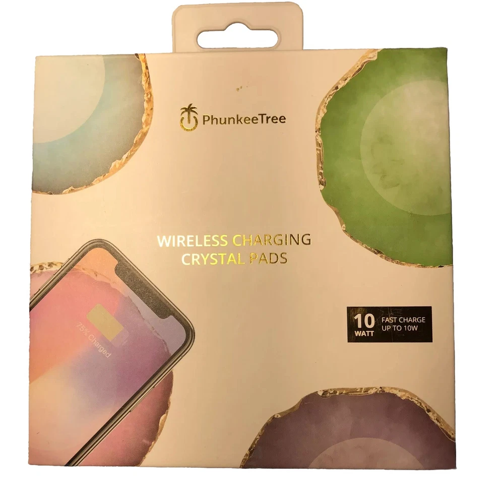 Phunkeetree Wireless Charging Crystal Agate Pad Fast Charge 10 Watt Pink Compatible with Apple and Samsung Wireless Devices New in Box Box X310