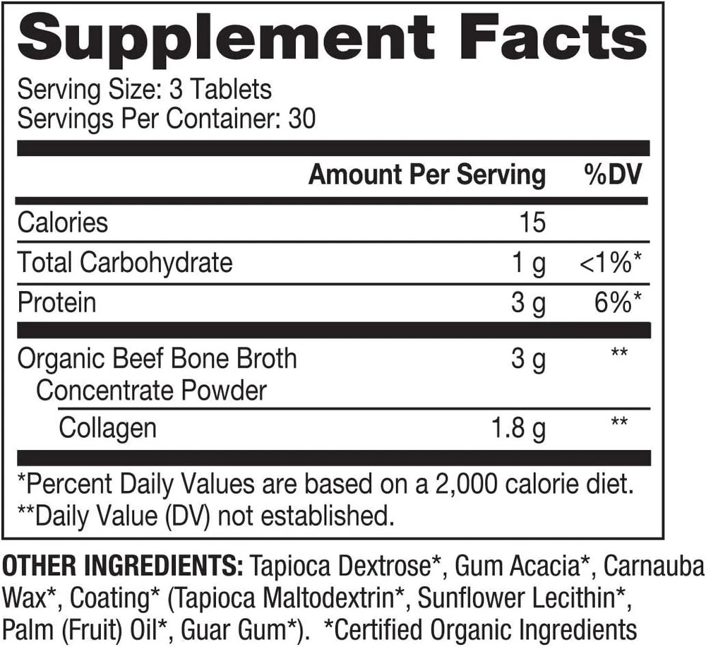 Physician Formulated Bone Broth Collagen Tablets - Trusted Quality ‹ › ‹ › ‹ › ‹ › ‹ › ‹ › ‹ › ‹ › Physician Formulated Bone Broth Collagen Tablets - Trusted Quality Features: Provides nutrients to support healthy skin, hair, and nails Supports strong bones, joints, muscles, and healthy digestion Each daily serving provides 1.8 g of collagen in convenient, travel-friendly tablets Made with the finest Organic Beef Bone Broth Concentrate sourced from U.S., grass-fed cows raised without antibiotics or hormones Physician formulated and developed with premium quality standards Benefits: Promotes youthful appearance and overall health Convenient and easy to incorporate into your daily routine Sourced from high-quality, organic ingredients Trusted source in natural health for over two decades Supports multiple aspects of health and wellness Why choose our Bone Broth Collagen Tablets? Experience the benefits of bone broth collagen in a convenient tablet form. Our physician formulated tablets provide essential nutrients for healthy skin, hair, nails, bones, joints, muscles, and digestion. Made with premium quality Organic Beef Bone Broth Concentrate sourced from grass-fed cows, our tablets are a trusted choice for those looking to support their overall health and wellness. Don't settle for inferior products - choose the best for your body and choose our Bone Broth Collagen Tablets today! Shipping Free & Fast Shipping - We offer free shipping to most of the USA with a normal delivery time of 3-7 days. However, due to the current situation, additional delivery time (up to 3 weeks) may be required for some items. Alternative Carriers - We may use alternative carriers (e.g. USPS, FedEx, UPS, etc.) to ensure your package arrives safely and on time. Due to the use of multiple carriers, we are unable to provide a tracking number automatically. Handling Time - Orders are processed and shipped within 1-2 business days of receiving cleared payment. Shipping Restrictions - Shipping to Alaska, Hawaii, Puerto Rico, Guam, and other US territories may incur shipping charges or delivery restrictions. Please contact us before ordering, or your order can be refunded/cancelled. State Restrictions - There may be restrictions based on your state of purchase. For example, certain items may not be shipped to California due to state regulations. Contact for Tracking Updates - If you require tracking updates or have any concerns about the delivery of your order, please feel free to contact us, and we will be happy to assist you. Return 30-Day Hassle-Free Returns - We want you to be completely satisfied with your purchase. If you are not, you can return the item within 30 days of receiving it for a full refund or exchange. Easy Return Process - To start a return, simply contact us and we will provide you with a prepaid return shipping label and detailed instructions. Restocking Fee - There are no restocking fees for returns. However, the buyer is responsible for return shipping costs if the return is not due to a seller's error. Refund Processing Time - Refunds will be processed within 5 business days of receiving the returned item in its original condition. Payment We accept all major credit cards, PayPal, and Apple Pay for your convenience. Your payment information is secure and encrypted to ensure a safe and seamless transaction. Please complete your payment within 3 days of purchase to avoid any delays in shipping. Feedback Your feedback is extremely important to us. We strive to provide the best products and customer service possible. If you are satisfied with your purchase, please take a moment to leave us a positive review. If you have any concerns or issues with your order, please contact us before leaving negative feedback. We are committed to resolving any problems and ensuring your satisfaction. Contact Us If you have any questions or concerns, please feel free to reach out to our customer support team. You can contact us through the eBay messaging system. We are available Monday to Friday, 9:00 am to 5:00 pm EST, and we will do our best to respond to your inquiry within 24 hours. Thank you for supporting our small family business!