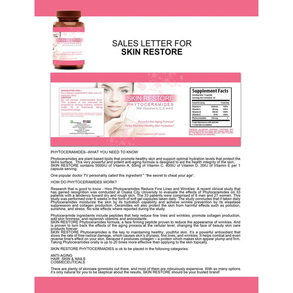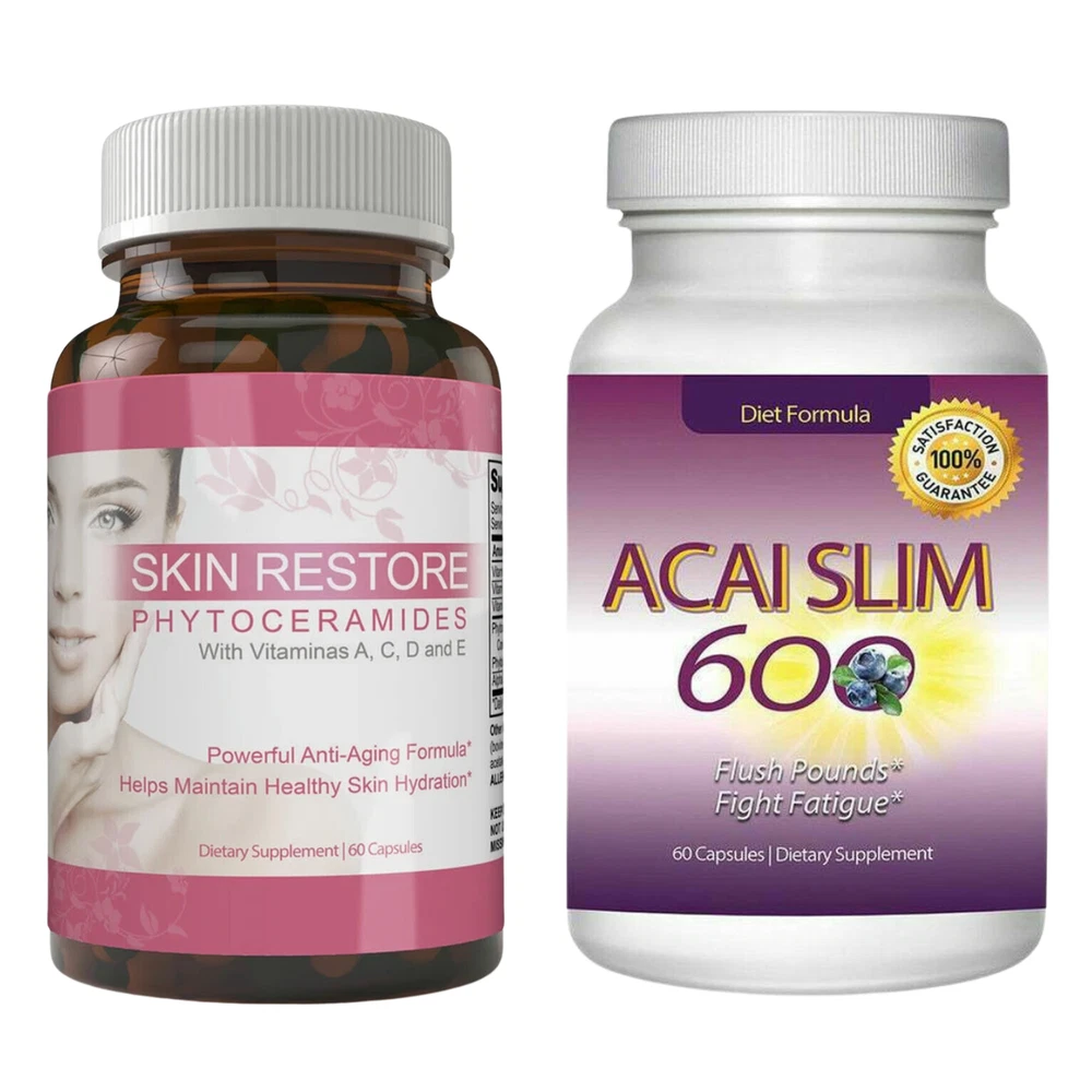 100% Natural Premium Quality Fast Shipping Phytoceramides Anti Aging Restore Skin & Acai Slim Berry Weight Loss Supplement Special 1.) Phytoceramides Anti Aging Restore Skin Health Multi Vitamins Caps Reverse signs of aging from the inside with these Skin Restore anti-aging phytoceramide capsules. With 5,000international units of vitamin A in each capsule, these phytoceramide capsules work to restore skin and build its strength organically, without any topical skin treatments. Each capsule also contains vitamin E to make skin naturally smooth and beautiful. Skin Restoer Phytoceramides is the key to maintaining healthy, youthful skin. It's a powerful antioxidant that slows the rate of free-radical damage, which causes skin's dryness, fine lines, and wrinkles. It helps combat and even reverse time's effect on your skin, because it produces collagen a protein which makes skin appear plump and firm. Taking Phytoceramides orally is up to 20 times more effective than applying to the skin topically. There are plenty of skincare gimmicks out there, and most of them are ridiculously expensive. With so many options, it is only natural for you to be skeptical about the results, Skin Restore should be your trusted brand. 2.) Ultimate Organic Acai Slim Berry Weight Loss Belly Fat Burn Dietary Supplement Maintain a normal metabolism and energy production when you take these Acai Slim capsules, which contain acai berries from the Amazon forest. The acai berry will increase energy and stamina levels, and help support healthy cardiovascular and digestive health because of its amazing combination of healthy fats, phytosterols, dietary fiber, omegas & vitamins. Count: 60 capsules Medicine Form: Caplets Suitable for Vegetarians and Vegans. OFFER See our other items Payment Shipping We accept payment by any of the following methods: PayPal Please pay as soon as possible after winning an auction, as that will allow us to post your item to you sooner! We offer FREE standard shipping on all orders! Your order will be shipped within 1 working day of receiving payment (Monday-Friday) and you should expect to receive it in 1 to 5 business after initial shipment date if shipped with USPS First Class Mail. In the very unlikely event that your item is lost or damaged during shipping, then WE are responsible and will issue either a full refund or replacement. Returns If you are not 100% satisfied with your purchase, you can return the product and get a full refund or exchange the product for another one, be it similar or not. You can return a product for up to 30 days from the date you purchased it. Any product you return must be in the same condition you received it and in the original packaging. Please keep the receipt. 100% Natural Premium Quality Fast Shipping 1.) Phytoceramides Anti Aging Restore Skin Health Multi Vitamins Caps Reverse signs of aging from the inside with these Skin Restore anti-aging phytoceramide capsules. With 5,000international units of vitamin A in each capsule, these phytoceramide capsules work to restore skin and build its strength organically, without any topical skin treatments. Each capsule also contains vitamin E to make skin naturally smooth and beautiful. Skin Restoer Phytoceramides is the key to maintaining healthy, youthful skin. It's a powerful antioxidant that slows the rate of free-radical damage, which causes skin's dryness, fine lines, and wrinkles. It helps combat and even reverse time's effect on your skin, because it produces collagen a protein which makes skin appear plump and firm. Taking Phytoceramides orally is up to 20 times more effective than applying to the skin topically. There are plenty of skincare gimmicks out there, and most of them are ridiculously expensive. With so many options, it is only natural for you to be skeptical about the results, Skin Restore should be your trusted brand. 2.) Ultimate Organic Acai Slim Berry Weight Loss Belly Fat Burn Dietary Supplement Maintain a normal metabolism and energy production when you take these Acai Slim capsules, which contain acai berries from the Amazon forest. The acai berry will increase energy and stamina levels, and help support healthy cardiovascular and digestive health because of its amazing combination of healthy fats, phytosterols, dietary fiber, omegas & vitamins. Count: 60 capsules Medicine Form: Caplets Suitable for Vegetarians and Vegans. Phytoceramides Anti Aging Restore Skin & Acai Slim Berry Weight Loss Supplement 100% Natural Premium Quality Fast Shipping Special OFFER See our other items 1.) Phytoceramides Anti Aging Restore Skin Health Multi Vitamins Caps Reverse signs of aging from the inside with these Skin Restore anti-aging phytoceramide capsules. With 5,000international units of vitamin A in each capsule, these phytoceramide capsules work to restore skin and build its strength organically, without any topical skin treatments. Each capsule also contains vitamin E to make skin naturally smooth and beautiful. Skin Restoer Phytoceramides is the key to maintaining healthy, youthful skin. It's a powerful antioxidant that slows the rate of free-radical damage, which causes skin's dryness, fine lines, and wrinkles. It helps combat and even reverse time's effect on your skin, because it produces collagen a protein which makes skin appear plump and firm. Taking Phytoceramides orally is up to 20 times more effective than applying to the skin topically. There are plenty of skincare gimmicks out there, and most of them are ridiculously expensive. With so many options, it is only natural for you to be skeptical about the results, Skin Restore should be your trusted brand. 2.) Ultimate Organic Acai Slim Berry Weight Loss Belly Fat Burn Dietary Supplement Maintain a normal metabolism and energy production when you take these Acai Slim capsules, which contain acai berries from the Amazon forest. The acai berry will increase energy and stamina levels, and help support healthy cardiovascular and digestive health 