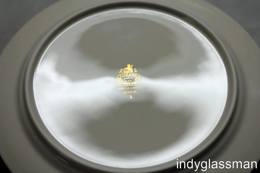 Every plate offered is in excellent damage-free condition with no apparent signs of use. They are very clean and shiny, top and bottom, without crazing, chips, cracks, scratches, dark utensil markings, or dishwasher film, and the Platinum trim looks excellent with no signs of wear. Every plate offered has been closely inspected so rest assured they are all in excellent damage-free condition and of the highest quality. Please see all of the super-sized photos below for the best visual description of these beautiful vintage plates. They each measure approx. 8 1/4" across. Pickard (USA) GENEVA IVORY PLATINUM Salad Plate UNUSED Pickard (USA) GENEVA IVORY PLATINUM Salad Plate UNUSED Click image to enlarge Description Things you should know about Place Settings Plus Welcome! There are all kinds of people selling on eBay. Our goal is to be the one you can trust and depend on for high quality items at the best possible prices. Each item is thoroughly cleaned and inspected before listing. Each item is in "gently used" to "near mint" condition unless stated otherwise. Each item is described in detail and any relevant imperfection disclosed. All photos shown are of the actual item you will receive. (No stock photos) Each item is double checked for quality and condition prior to shipment. Each item is professionally packaged for a safer journey to your door. We always combine multiple items to save you on shipping charges. We do not profit on shipping charges . You will only pay the actual shipping charge and $1.00 for S&H. Most orders ship within 1 business day after payment is received. That's it! Please review my latest feedback and buy with confidence! ITEM DESCRIPTION Place Settings Plus is pleased to offer (1) Pickard (USA), Porcelain, Salad Plate in the beautiful "Geneva Ivory" pattern with Platinum trim. Circa 1978-Present. Every plate offered is in excellent damage-free condition with no apparent signs of use. They are very clean and shiny, top and bottom, without crazing, chips, cracks, scratches, dark utensil markings, or dishwasher film, and the Platinum trim looks excellent with no signs of wear. Every plate offered has been closely inspected so rest assured they are all in excellent damage-free condition and of the highest quality. Please see all of the super-sized photos below for the best visual description of these beautiful vintage plates. They each measure approx. 8 1/4" across. They each weigh approx. 12 oz. Please check out my other listings and save with combined shipping. Due to a few dishonest people, all items will be shipped with security labels to prevent fraudulent returns. No returns will be accepted without the security label or if it has been tampered with. The label easily washes off with warm soapy water or alcohol. Get images that make Supersized seem small. Showcase your items with Auctiva's Listing Templates! THE simple solution for eBay sellers. Track Page Views With Auctiva's Counter