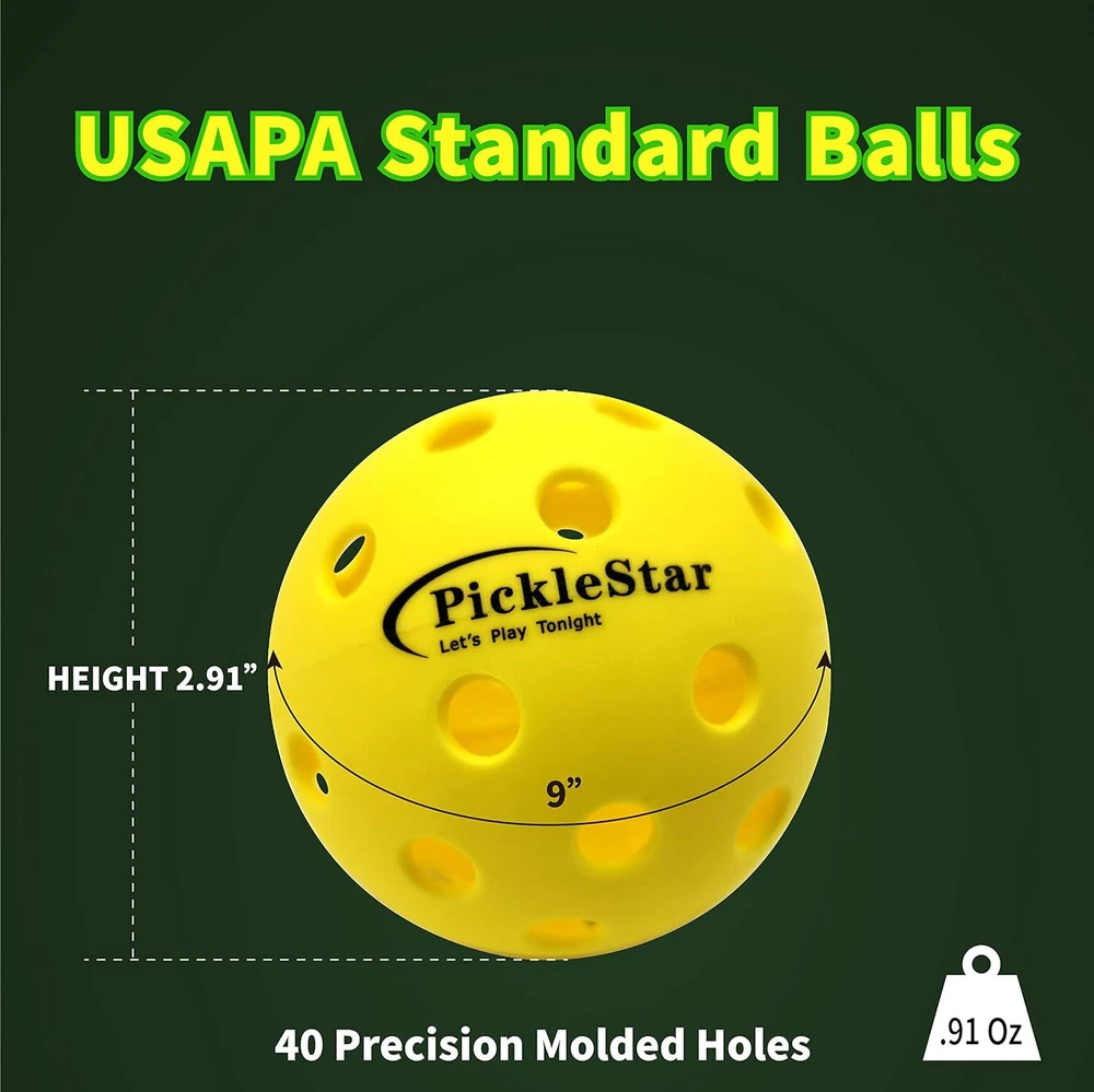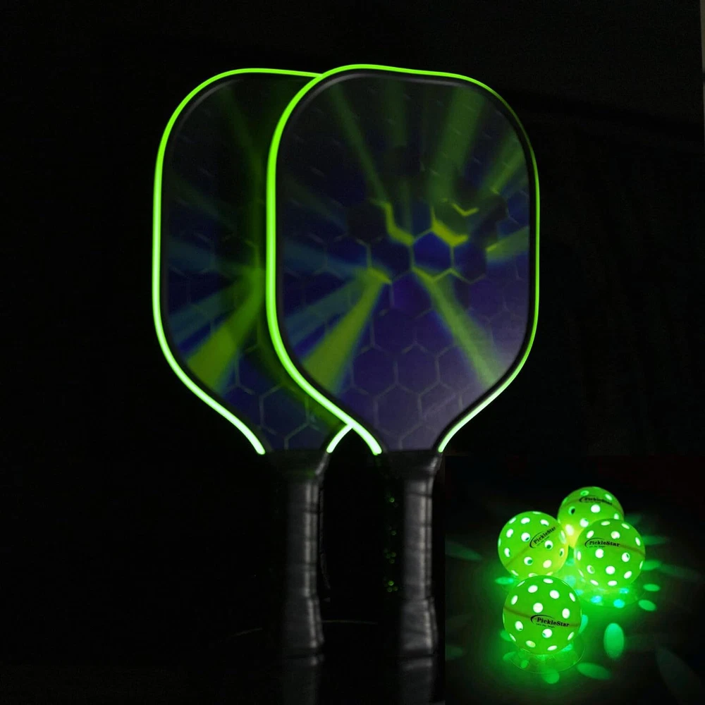 ✨ Brilliant LED Lights: Our pickleballs are equipped with high-quality, vibrant LED lights that ensure visibility in any playing condition. Multi-Color Options: Choose from a range of eye-catching colors to suit your style and mood. Make every game a celebration! Durable and Long-Lasting: Engineered for durability, these LED pickleballs are built to withstand the intensity of your matches. Play without worry, match after match. Battery-Powered: Easily replaceable batteries ensure you can keep the fun going for hours on end. No need to worry about running out of power during your game. Perfect for Any Court: Whether you're playing on indoor or outdoor courts, these LED light-up pickleballs are designed to perform on any surface. Great Gift Idea: Surprise your pickleball buddies with the gift of illuminated fun. These LED pickleballs make the perfect present for any pickleball enthusiast. Product Description Illuminate Your Game with LED Light-Up Pickleballs! Premium Video Carousel from PickleStar! Illuminate Your Game with LED Lit-Up Pickleballs! PickleStar-Inventor of the LED Lit-up pickleball balls and paddles! Are you ready to take your pickleball game to a whole new level? Introducing our LED Light-Up Pickleballs – the perfect fusion of fun and functionality! Whether you're playing indoors or outdoors, day or night, these vibrant LED balls will light up your game and add a splash of excitement to every rally.* 4 LED Light up pickle balls How Pickleball lovers make their Christmas Tree? Make a special Christmas Tree With PickleStar LED Pickleball balls & golf balls! * Some LED Light up pickle balls * Some LED Light up Golf Practice balls * Some Christmass Decorations * 1 Christmas Trees How the Pickleball Lovers make Christmas Wreath? Make a special Christmas Wreath With PickleStar LED Lit-up Pickleball balls! * 4 LED Light up Golf Practice balls * Some Christmass Decorations * 1 cypress circle PickleStar LED Light Up Pickleball Paddles Perfect mate for the PickleStar LED Light Up Pickleball Balls Ice Blue LED Light Up Pickleball Balls Ice Blue LED Light Up Pickleball Balls Pink Pickleball With Purple Light Special designed for women pickleball lovers Yellow Pickleball with Green Light 9 pack Eco pack LED light up pickleball, super Bright for your Nighttime pickleball games. Multi-Color Model LED Light Up Pickleball Paddles Multi-Color Model LED Light Up Pickleball Paddles, good mate for the LED Light up pickleball balls. Orange Pickleball with Orange Light Orange Pickleball with Orange Light LED Light up Golf Practice balls LED Light up Golf Practice balls with 4 color balls. Does each ball come with screw battery for the lights? Yes, it is. If not, that might be stolen by the previous buyer, please contact Amazon service for replace. Where do I get replacement batteries for the light up pickleball? You can buy the replacement batteries at Amazon! The ASIN is B0BFDW4ZJF Are these durable enough to be hit with a wiffle ball bat? Yes, they are durable enough for the wiffle ball bat. Do these balls can be used with poor indoor lighting? Yes, the LED light up brightly, it could be used any light conditions. Will the light screws would create an uneven bounce and fly? A little bit. But the light screws are weighted ever so slightly, it really doesn't noticeably affect the game. Products from PickleStar Add to Cart Add to Cart Add to Cart Add to Cart PickleStar1 Yellow Glow Add to Cart Add to Cart Customer Reviews 5.0 out of 5 stars 2 4.1 out of 5 stars 294 4.1 out of 5 stars 294 4.1 out of 5 stars 294 — 4.5 out of 5 stars 7 4.1 out of 5 stars 294 Price $33.99 $ 33 . 99 $26.98 $ 26 . 98 $28.98 $ 28 . 98 $30.99 $ 30 . 99 — $33.99 $ 33 . 99 $11.98 $ 11 . 98 Waterproof ✔ ✘ ✘ ✘ ✘ ✘ ✘ LED Connection Spaced Colomns Full Circle Full Circle Full Circle Full Circle Full Circle Full Circle Brightness Excellent Good Good Good Good Good Good Battery 8mAh 5 mAh 5 mAh 5 mAh 5 mAh 5 mAh 5 mAh Cold Resistant ✔ ✔ ✔ ✔ ✔ ✔ ✔