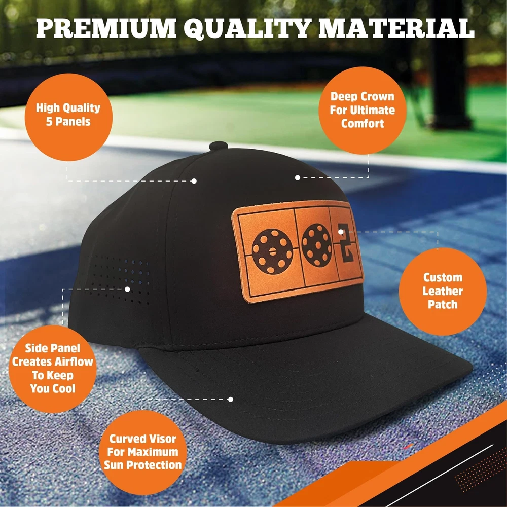 Pickleball Hat, Pickleball Accessories Women, Pickleball Gear, Adjustable Snapback Strap and Breathable 5- Panel Hat, Leather O-O-2 Scoring Design Black Product Details Package Dimensions : 8.19 x 7.68 x 4.61 inches; 3.21 ounces Department : unisex-adult Date First Available : November 12, 2023 Country of Origin : China Get to dinking on the pickleball courts with this 5-Panel pickleball hat for men and women from ADINKTED. Pickleball is one of the most fun, exciting, and shareable sports out there today. No matter your age, it’s easy to get out on the court and hit the wiffleball around with friends or family. We want to make that experience even more exciting for everyone with these stylish "O-O-2" leather patched pickleball hats for men and women that are sure to get people laughing and having a good time. Whether you're new to the sport or a veteran of the game, this unique logo will ensure each game starts off with the correct scoring!Designed for comfort and style, these versatile pickleball hats help block out the sun and keep you cool, so the only thing you have to focus on is racking up the score. We fitted these premium pickleball hats with a wide, thick visor/brim which helps block out more sun when you’re out on the court. The hat also features laser cut holes on the sides for optimal airflow and breathability that will help keep you stay cool when you’re playing hard. Each premium pickleball hat also features an easy to adjust plastic strap which allows each dink master to find their perfect fit! We want you to represent your love of pickleball on every court which is why our hat is lightweight, breathable, and comfortable to wear both indoor and outdoor. This hat features a unique pickleball theme that represents the very game you love to play; it’s going to be a great conversation starter with other pickleball players or for people who are interested in the game! This is a must have pickleball gear for men and women.Here at ADINKTED, we are focused on making high-quality, 5-Panel pickleball hats that support your busy life, which is why every order comes with our fast, reliable, and responsive customer service and support. Get one for yourself or as a gift for the pickleball lover in your life! Dink Responsibly!
