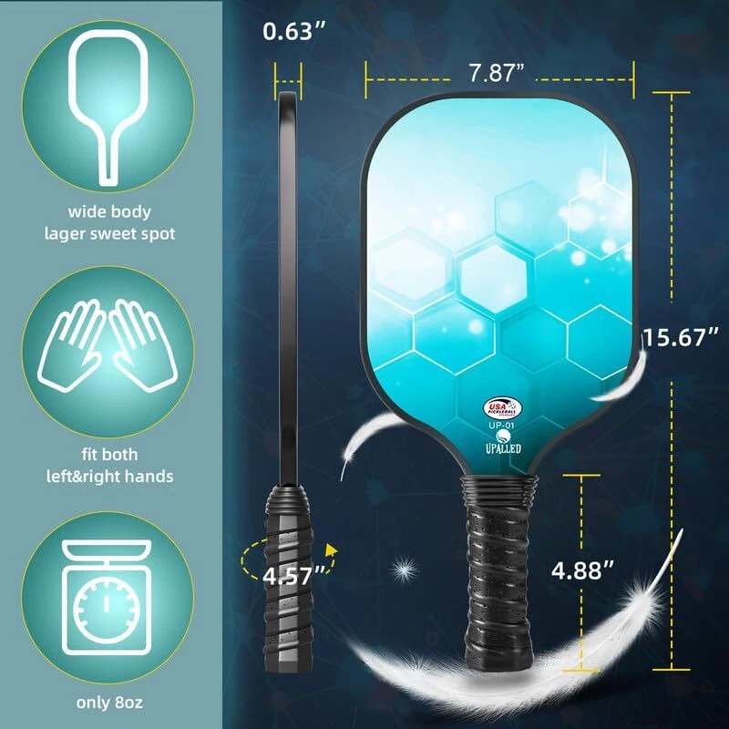 Return Policy Fast Delivery Trusted seller Pickleball Paddles Set of 2, USAPA Approved Fiberglass Pickleball Set with 2 Lightweight Pickleball Paddle,4 Pickleball Balls,1 Backpack Bag,2 Athletic Tape, Pickleball Rackets for Men Women Gifts Product Description ????? ???????? ?????????? ???????:The pickleball set approved by the USA Pickleball Association (USAPA). These pickleball paddle bear the official USAPA approval label, ensuring a high standard of safety and professionalism, making ball paddles eligible for use in competitive tournaments. ??????? ??????? ?????????? ???????:Our pickleball set crafted with cutting-edge fiberglass and polypropylene honeycomb core technology, and deliver outstanding power and control on the court. The innovative polypropylene honeycomb core minimizes vibration, ensuring a stable speed for optimal ball strike feel, the fiberglass surface enhances rotational performance, making pickleball paddle lightweight and robust. ??????????? ????????? ??????? ????:Pickleball Paddles set designed with a perforated, sweat-absorbent, and cushioned grip, it offers unparalleled comfort. The 4.57" grip circumference provides ample room for maximum wrist snap, enabling both power and spin. The ergonomic design ensures a secure grasp, enhancing your playing experience. ??????????? & ???? ????? ????:Our pickleball paddles area creates more sweet spots for perfect shots with ease. This pickleball rackets weigh between 7.78- 7.8 oz, placing them in the medium-weight range, Perfect pickleball set for all levels and all ages players from beginners to intermediates and professionals. ???????? ?????????? ??????? ????:Includes 2 pickleball paddles,2 outdoor pickleball,2 indoor pickle ball,1 protable bag. A perfect pickleball paddle gift for Women Men Kids Beginners Starter! 7*24H Quick Response.Any issues for pickleball set, please reach out via Message Center. Shipping Returns Payment Shipping Shipping is FREE to all addresses other than APO/PO boxes in the lower 48 states. All our stock ships from US-based warehouses. Shipped via USPS or UPS (depending on location and package weight) Unless stated otherwise, all orders will ship within 24-72 hours of your payment being processed. Check our feedback to see the great reviews of FAST shipping we offer. Returns Seller does not accept returns Payment We currently accept payment via eBay managed payments only. Once payment is cleared, we will dispatch your shipment within 1-3 business days. Please refer to the "Shipping" tab for more information regarding shipping speed to your destination.