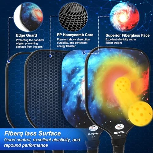 Return Policy Fast Delivery Trusted seller Pickleball Paddles Set of 2,USAPA Approved Fiberglass Pickleball Paddles Set 2023 RV-01,Include 2 Fiberglass Surface Pickleball Rackets,2 40-Hole Indoor Balls,2 26-Hole Outdoor Balls,1 Carrying Bag Product Description 【USAPA Pickleball Approved】The pickleball set has successfully undergone inspection by the USA Pickleball Association and has been deemed compliant with official tournament standards. It received official approval on November 6, 2023, and you can find further details on the USA Pickleball Association's website. These pickleball paddles from will meet your needs. 【Power and Speed 】 The pickleball paddle uses a PP honeycomb core and fiberglass surface. The honeycomb structure minimizes vibrations and impact, ensuring a smoother hitting experience that reduces arm fatigue and maintains stable ball feel. This design enhances energy storage and release, providing a stronger elastic response during hits. It results in increased energy and bounce, ultimately improving the ball's speed and responsiveness. 【Comfortable Ergonomic Handle】 The raised perforated grip design comfortably fits between fingers. The 4 1/8 grip size paired with the ideal 4.9-inch length offers a secure hold. The premium handle, anti-skid, wear-resistant, and durable, significantly increases the chances of success. It's a fantastic pickleball gift. 【Lightweight with a Large Sweet Spot】 A wider paddle surface (length: 10.5 inches, width: 8.1 inches) creates a vast sweet spot for easy hitting—especially advantageous for beginners! Weighing 7.8 ounces, it promotes extended swings. The durable edge guard shields the paddle from scratches, enhancing its lifespan. 【Perfect Kit for Beginners and Pros】 This set of pickleball paddles and balls comes with all the necessary equipment for a pickleball court, making it an ideal gift for both beginners and professional players, cherished by friends and family. Shipping Returns Payment Shipping Shipping is FREE to all addresses other than APO/PO boxes in the lower 48 states. All our stock ships from US-based warehouses. Shipped via USPS or UPS (depending on location and package weight) Unless stated otherwise, all orders will ship within 24-72 hours of your payment being processed. Check our feedback to see the great reviews of FAST shipping we offer. Returns Seller does not accept returns Payment We currently accept payment via eBay managed payments only. Once payment is cleared, we will dispatch your shipment within 1-3 business days. Please refer to the "Shipping" tab for more information regarding shipping speed to your destination.