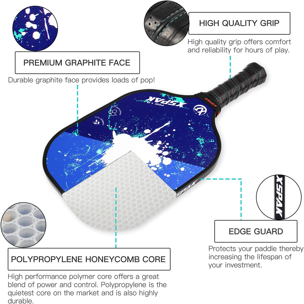 Store New Arrivals Add to Favorite View Feedback Contact Pickleball Paddles Sets, USAPA Graphite Face/Carbon Fiber and Polypropylene Honeycomb Core, Anti-Slip Sweat-Absorbing Soft Cushion Grip, Pickleball Set of 2 with 2-4 Balls and 1 Bag/Backpack Description Item Dimensions LxWxH 15.6 x 8 x 0.04 inches Color Graphite Face-Set of 2 with paddle cover Material Graphite Package Weight 0.73 Kilograms Item Weight 8 Ounces Shaft Material Graphite Outer Material graphite Size 15.6" Frame Material Carbon Fiber Grip Size 4 1/4 inches Age Range (Description) All Ages Sport Pickleball Skill Level Beginner Product Dimensions 15.6"L x 8"W Item Package Dimensions L x W x H 16.85 x 8.86 x 2.13 inches VALUE SET - Package include 2 pickleball paddles and 2 zippered neoprene cover to protect the pickleball racket. PREMIUM GRAPHITE CRAFT - The premium graphite face gives ball precise control for accuracy. Great for intermediate to advanced players. POLYMER HONEYCOMB CORE - The polymer core is recognized as the softest and quietest pickleball paddle cores, which provides pickleball racket with redefined strength, optimal performance and durability. SUPERIOR EDGE GUARD – Low profile edge guard with high durability protects the paddle hitting surface and core against court damage,yet slim enough to reduces mishits. FOR ALL AGES - Pickleball is an activity suitable for all ages. Product Description XS XSPAK spends endless efforts to design and make pickleball paddle for everyone, from beginners to professionals. We love pickleball.We want to see pickleball go main-stream. We love pickleball.We want to see pickleball go main-stream. XS XSPAK PICKLE PADDLE SET Polypropylene Honeycomb Core and Carbon Fiber Face Including 2 Paddles with 2 Cover Sleeves Specifications An average weight of 8 oz Medium grip circumference of 4 1/4" Paddle length of 15.6" Paddle width of 8" Grip length of 4.9" 1/5" overlapping edge guard ABOUT US We offer the best prices around on high quality products. Our E-store includes media such as books, movies, music and games while offering electronics, toys, sporting apparel, clothing, tools, general home, garden items and more. SHIPPING We are always working hard to ensure your package arrives as soon as possible. Please understand that some factors like weather, high postal traffic, and the performance of shipping companies are outside of our control. We offer free shipping to the lower 48 states and ship within 2 business days of payment, usually sooner. We do not accept P.O. Boxes. Please provide a physical address. For shipping outside of the continental USA, we only use eBay's Global Shipping Program.The item is shipped to KY and then sent to the rest of the world. International customers are responsible for all duties and taxes. Continue to check out in order to calculate costs for shipping the item to your country. Messages regarding eBay's Global Shipping Program MUST be directed at eBay EXCLUSIVELY. RETURNS We offer a 30-Day Return Policy on items which you are not completely satisfied with. You have the option for a full-refund or an exchange of the item. No returns are available on items shipped outside of the USA. PAYMENT We accept PayPal. CONTACT US This page content is yet to come Please ad us to your favorite seller and visit again later Thank You CUSTOMER SATISFACTION We try our very best to make sure every customer is completely satisfied. If there's a problem, message us! We're happy to help. WE ACCEPT Copyright © 2021 AutoDS. | All Rights Reserved