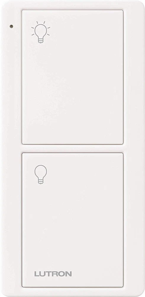 This handy wireless remote controls Caseta in wall smart switches from anywhere within the home Turn on and off multiple lights with the touch of a button Use as handheld remote, mount on a tabletop pedestal (L-PED1 WH) or attach to the wall with a bracket (PICO WBX ADAPT) Works as a switch where you need one most; fits within a standard wall plate (CW 1 WH) and mounts to any surface (use PICO-WBX-ADAPT) without cutting holes or running wire Uses Lutron's proprietary and highly reliable Clear Connect RF Technology that ensures seamless communication between your Caseta products Remote has 10 year battery life (battery included) Includes (1) Pico remote control; coordinating accessories sold separately The Pico smart remote control is a convenient way to control Lutron Caseta dimmers. With the 2-button Pico you can turn lights on or off from anywhere in the room. You can use the Pico as a handheld remote, mount it on a wall or mount it on a tabletop pedestal. You can also use the Pico remote control to turn on the lights from the safety of your car as you arrive home.