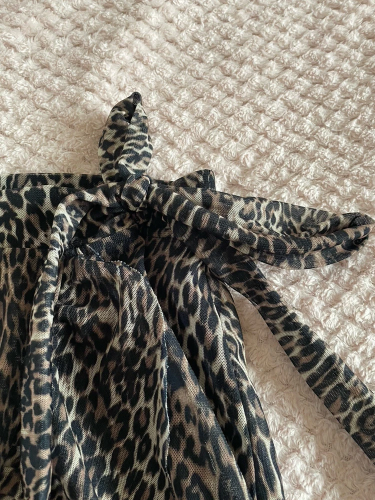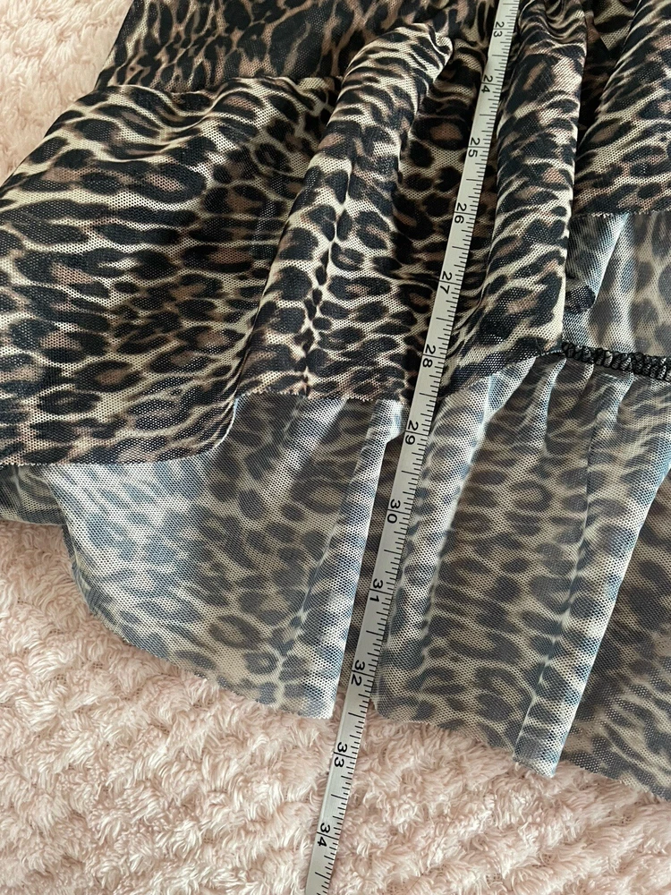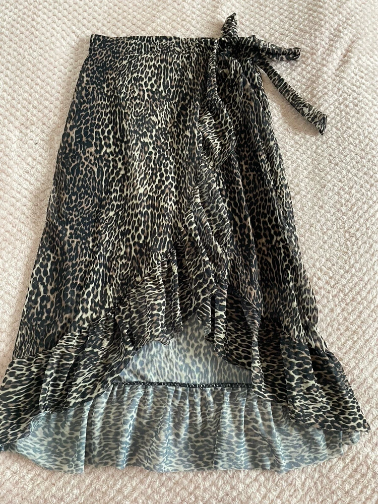 Pieces Leopard print Skirt XS 6 Midi Mesh Ruffle Wrap style skirt 00S y2k Slit