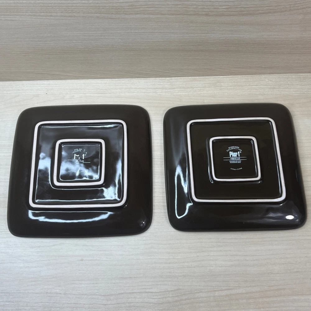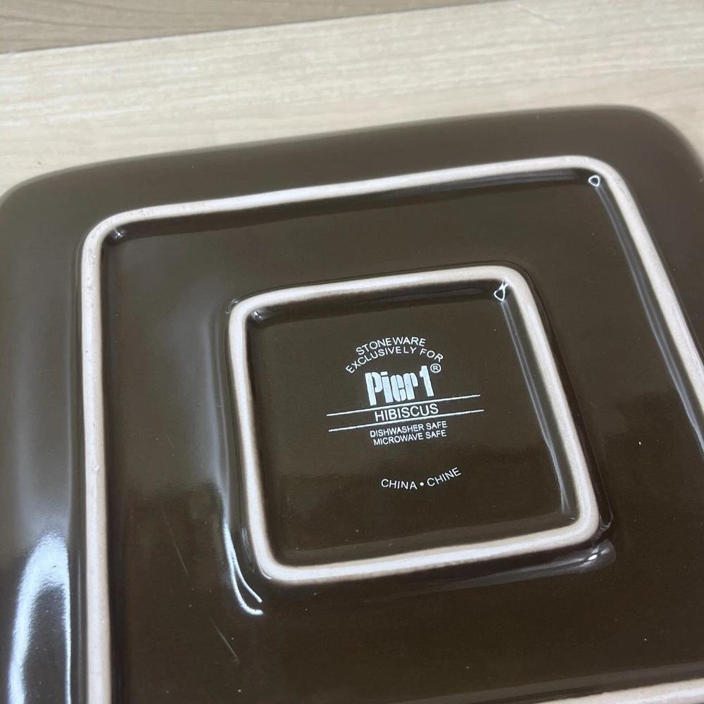 Number of Items in Set: Two-Piece Material: Ceramic Seller Notes: “Preowned condition may show utensils marks from normal use check pictures carefully.” Original/Reproduction: Original Shape: Square Country/Region of Manufacture: China Color: Brown Type: Salad Plate Brand: Pier 1 Pattern: Floral