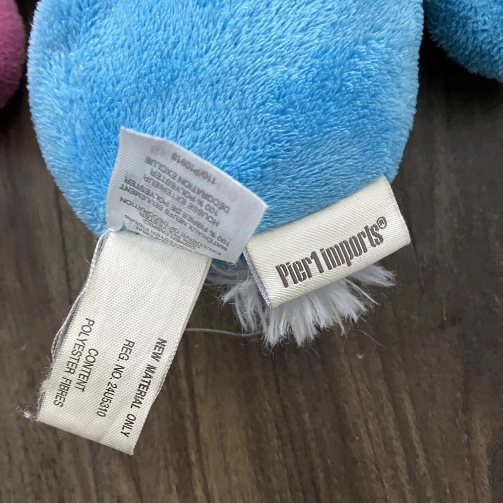Set of 2 plush Easter bunnies from pier 1. Each measures - at widest points- 6” by 6” In good condition. Blue bunny has a couple spots - see pictures.