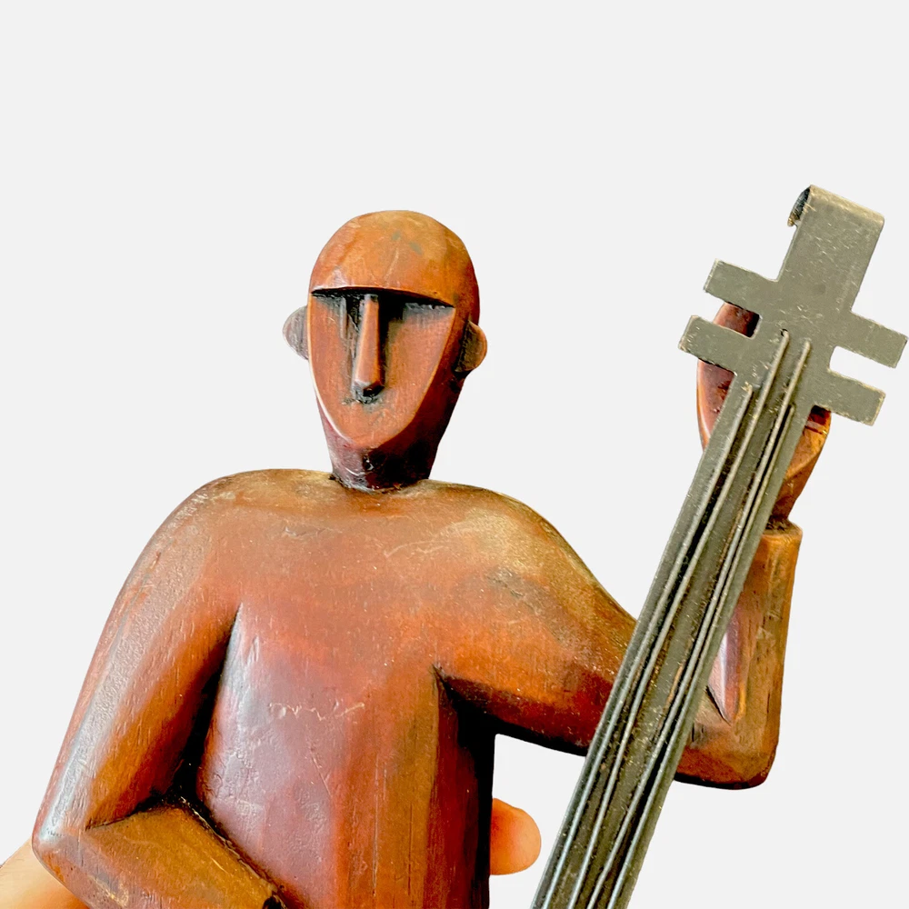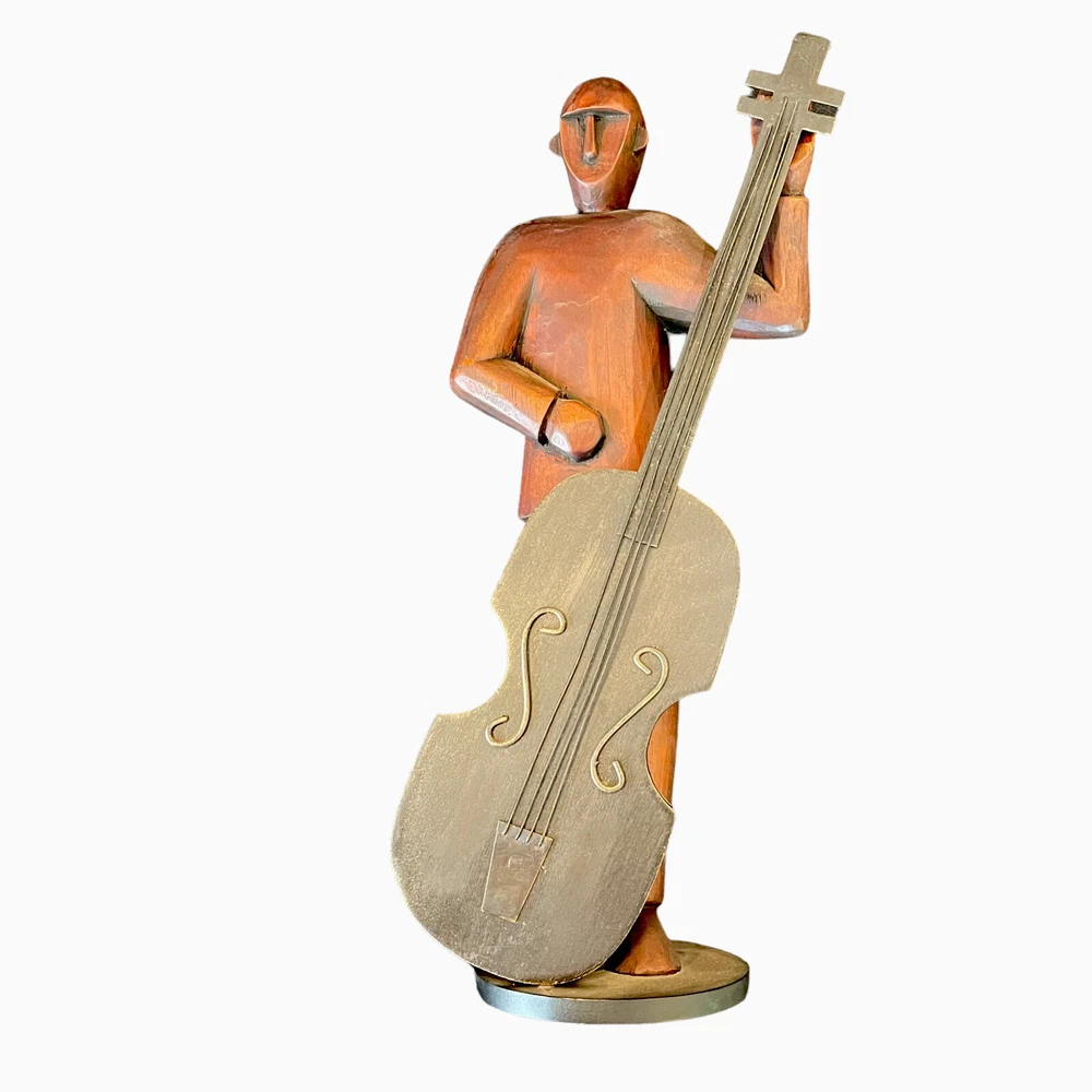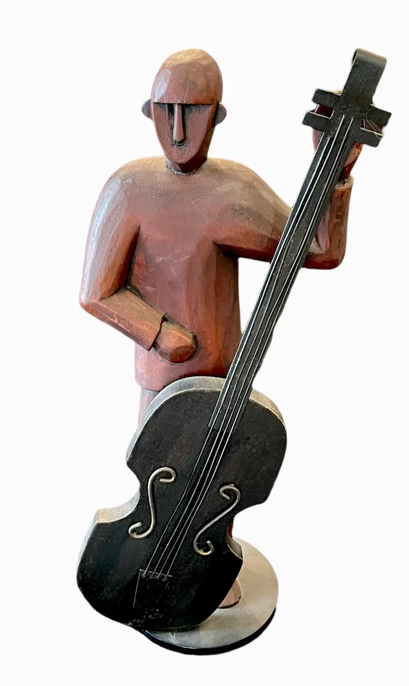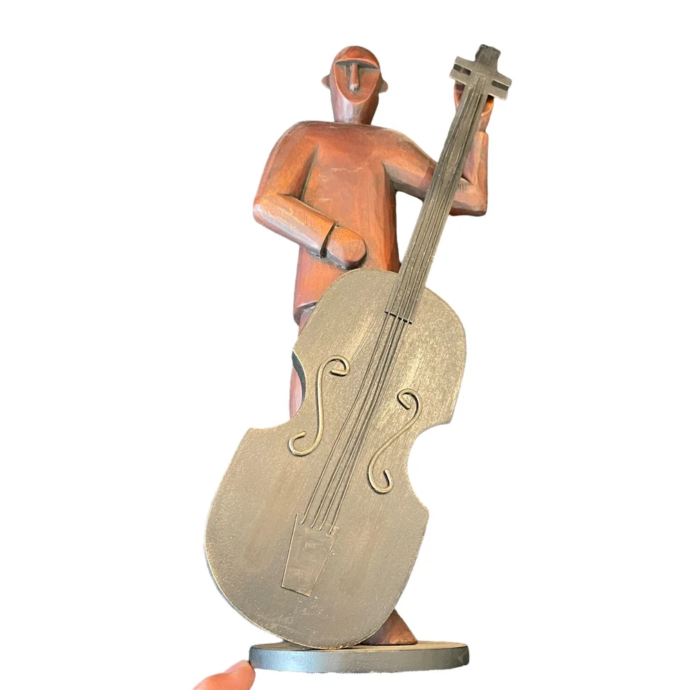 Pier 1 Imports Large 16" Hand Carved Wood Jazz Musician Cello Base Figurine