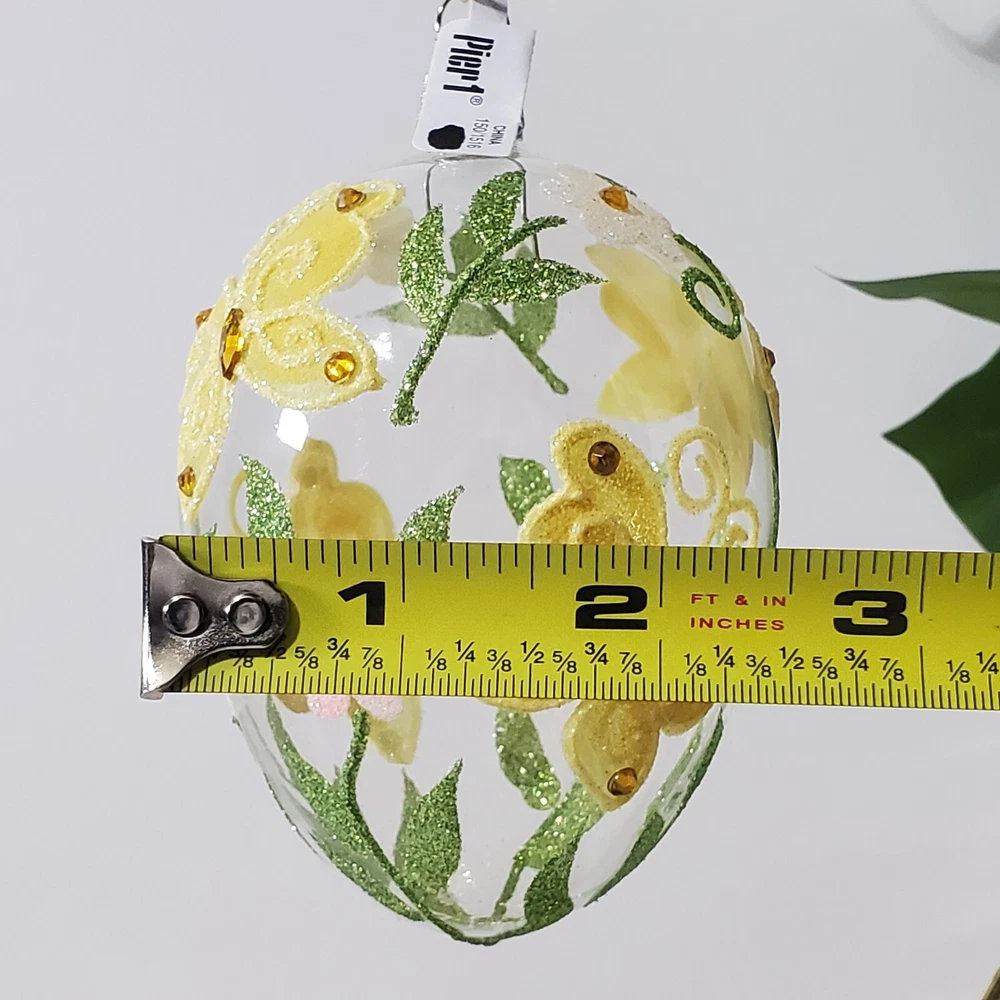 Pier 1 Glitter Butterfly Design Easter Egg Ornament Clear Glass Large Rare In good condition No cracks or breaks **Please view all photos for condition and measurements Thank you for viewing our products. PRODUCT SOLD AS IS. Please Message With Questions Prior To Purchase. If you have an issue with any of our items please reach out to us prior to contacting eBay. Thanks! Please note: We do sell new and used items. Our used items are pre-owned / pre-loved & may show signs of wear. Please view all photos for details, size, & imperfections as they are a form of the descriptions in addition to what is stated in the description section. We will do my best to inspect each item to find the best quality items possible. We do not include/replace batteries in any of our items unless they have been supplied by the manufacture and are in new unused condition. If an item is sent to you NEW / SEALED and you open it or remove the tags, it is NO LONGER ELIGIBLE FOR RETURN. Opened items / Removed tags - Means the item is NO LONGER in its original state and can no longer be sold as NEW. -Thank you for your understanding We are often asked about shipping cost. We are excited about your purchase and take pride in your package arriving to you undamaged. We wrap and cushion all necessary items prior to shipping which adds weight to your package. Unfortunately, this is not optional. Thank you for your understanding. We do not accept returns or issue refunds however in the event we do accept your return or issue a refund we do not reimburse your original shipping fee. Due to how eBay handles international shipping we do not accept any international returns. Thanks again!