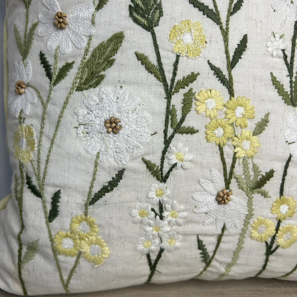 Pier 1 yellow and white floral daisies throw pillow. Measures 15” x 15”. In excellent condition.