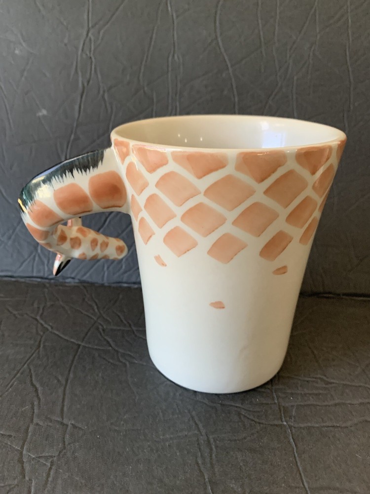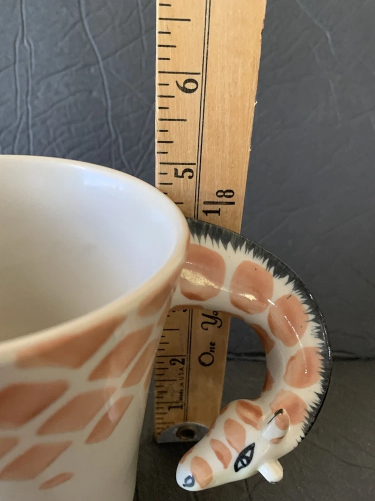 This listing is for a Pier One Imports giraffecoffee tea cup mug with the long neck of the giraffe as the handle. The mug is 4.75 inches in height.