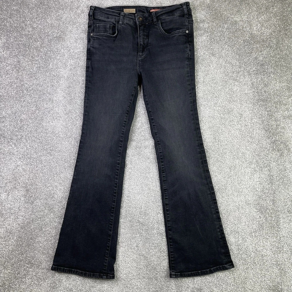 Personalize: No Department: Women Size: 28 Fabric Wash: Dark Rise: Mid (8.5-10.5 in) Fit: Regular Features: Stretch Inseam: 28.5 in Vintage: No Season: Winter, Summer, Spring, Fall Size Type: Regular Closure: Zip Theme: Bohemian, Preppy, City, Modern, Classic Pocket Type: 5-Pocket Design Waist Size: 28 in Type: Jeans Color: Black Handmade: No Accents: Logo Garment Care: Machine Washable Country/Region of Manufacture: Türkiye Material: Cotton Blend Fabric Type: Denim Pattern: Solid Style: Bootcut Brand: Pilcro