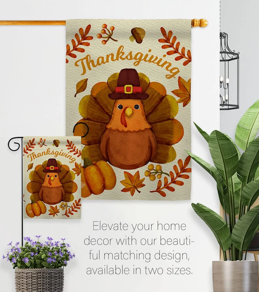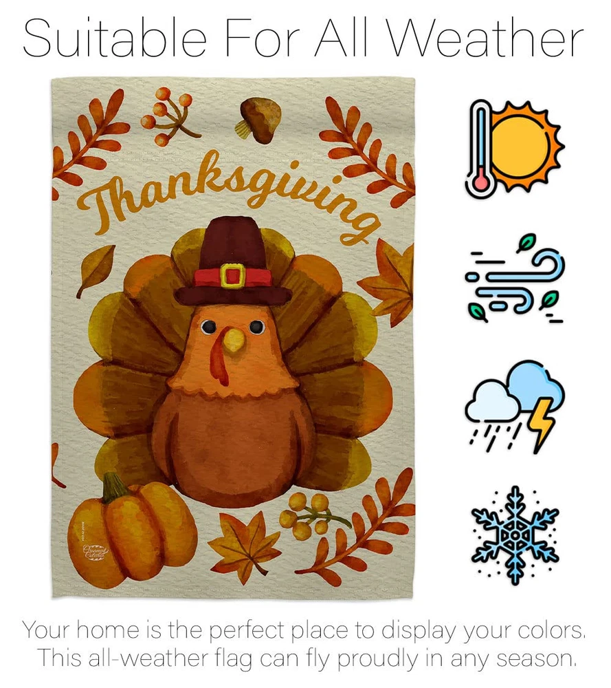 Pilgrim Turkey House Flag Set with Eagle Fall Thanksgiving Decor Gobble Pumpkins
