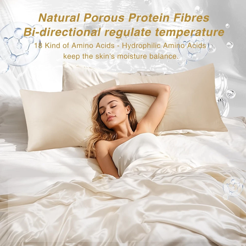 Made of pure mulberry silk: Silk pillow cases are made from double sided 6A grade 22 Momme 100% pure mulberry silk, it is very good soft, smooth, breathable, cool and skin-friendly. High quality silk pillow cases can have a comfortable sleeping environment and improve the quality of sleep Take care of your hair and face: Silk is a premium material that helps keep skin moisturised, moisture balanced and reduces acne. The smooth surface of silk pillow cases prevents friction and static electricity, reducing hair frizz and damage Perfect craftsmanship: The silk pillow cases are meticulously crafted ,it has an envelope closure opening, easy to cover the pillow. The mulberry silk pillow cases are meticulously stitched, with neat and fine stitches, making it sturdy and long lasting Two pieces mulberry silk pillow cases: The size of slik pillow cases : Queen Size : 20 inch x 30 inch ,King Size : 20 inch x 40 inch . Silk naturally is good for the human body,giving you a good night's sleep Beautifully packaged in an envelope for ideal gift : Silk is symbol of love and nobility and elegance,so silk pillow cases are ideal gift choices for birthdays,anniversaries, Valentine's Day,Mother's Day, Christmas,Thanksgiving,New Year's Day