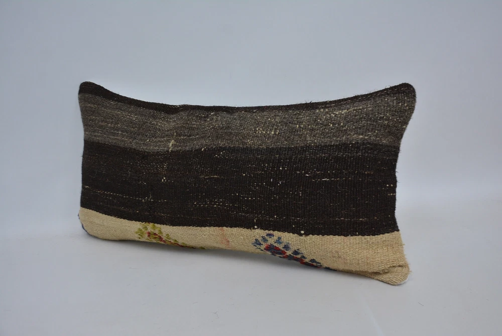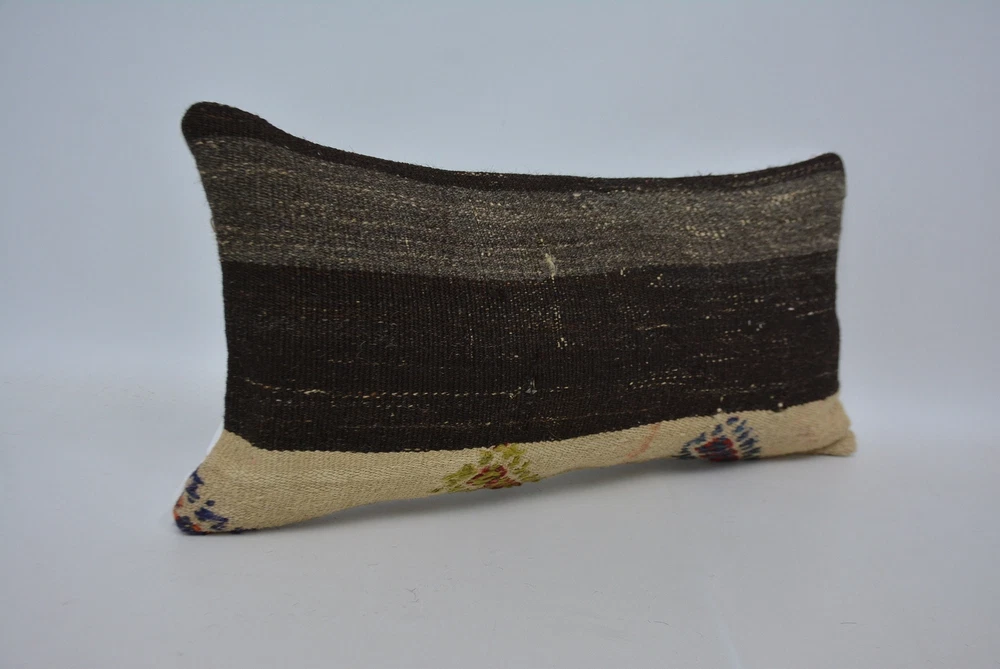 Pillow Cushion, Personalized Gift, Kilim Pillow Cover, 12"x24" Brown Cushion