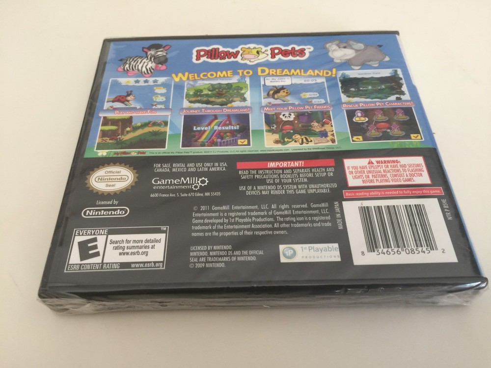Title: Pillow Pets For Nintendo DS DSi 3DS Photo: Please see item notes for details. ISBN / UPC: 834656085452 Internal Product Sku: EE628957 Item Type: DS Location: #A307 Condition: Used: Acceptable Game Name: Pillow Pets Platform: Nintendo DS Genre: Action/Adventure Rating: E-Everyone Release Year: 2011 Region Code: NTSC-U/C (US/CA) Country/Region of Manufacture: Unknown Details about the item: Includes game only. Acceptable Condition DS Game. Our small business sells new and used items. We take great pride in our service and strive to make every shopping experience great. If you have any issues please contact us. Bulk Purchase: If you are interested in buying in bulk please contact us. We are able to provide invoices and discounts on large purchases. Product Information: Please take notice of the seller notes detailed on the listing page. Do not assume an item has something included if it is not mentioned in the notes section. Most photos are stock photos and do not depict the actual item, so please take a moment to read the description that is in yellow. We will be happy to respond quickly via email to any questions you have about an item, so feel free to drop us a line. We classify items in these categories: Brand New items are unused and factory new. Refurbished items processed to ensure they meet original manufacturer specifications. Like New items have very minor wear, if any. Very Good items are well cared for but will have light wear and tear from normal use. Good items show wear from use, but remain fully functional. They may be marked, or have identifying markings on it, or show other signs of previous use. Acceptable items are fairly worn but continue to work with full functionality. Signs of wear can include aesthetic issues such as scratches, and discoloration. Used Media items will not have DLC Add-On codes. We also do not sell any PAL items, meaning our items will only work in NTSC video equipment. Store Hours And Support: We are open Monday through Friday, 9:00AM-5:00PM EST. We are closed Saturday, Sunday, and all major holidays. If you contact us after store hours, we'll reply on the next business day.. Domestic Shipping Policy: We generally ship items within one business day (Continental USA Standard shipping starts at $0.00 and Domestic USPS Priority Mail starts at $2.99). For select items we offer 2 day shipping which starts at 11.99 and one day shipping which starts at 18.99. Larger items will be shipped via FedEx. If the item is purchased during the weekend or on a holiday, it will be shipped next business day. We cannot ship to APO addresses, PO Boxes, US Protectorates, Hawaii or Alaska. Itembazaar in most cases does not charge a restocking fee for returns. However in situations where the return is related to buyer remorse or an incorrect address we will withhold shipping expenses and processing costs. We ship from 18370 South Miles Rd Warrensville Hts, OH 44128 USA. International Shipping Policy: We offer the eBay Global shipping program which takes care of tracking and customs. The way it works is we ship it to the eBay processing center and they ship it to the country. Feedback Policy: We leave feedback right after payment. If there are any problems, please contact us, we will make it right. ***CHECK OUT OUR STORE FOR A HUGE SELECTION OF DEALS!***