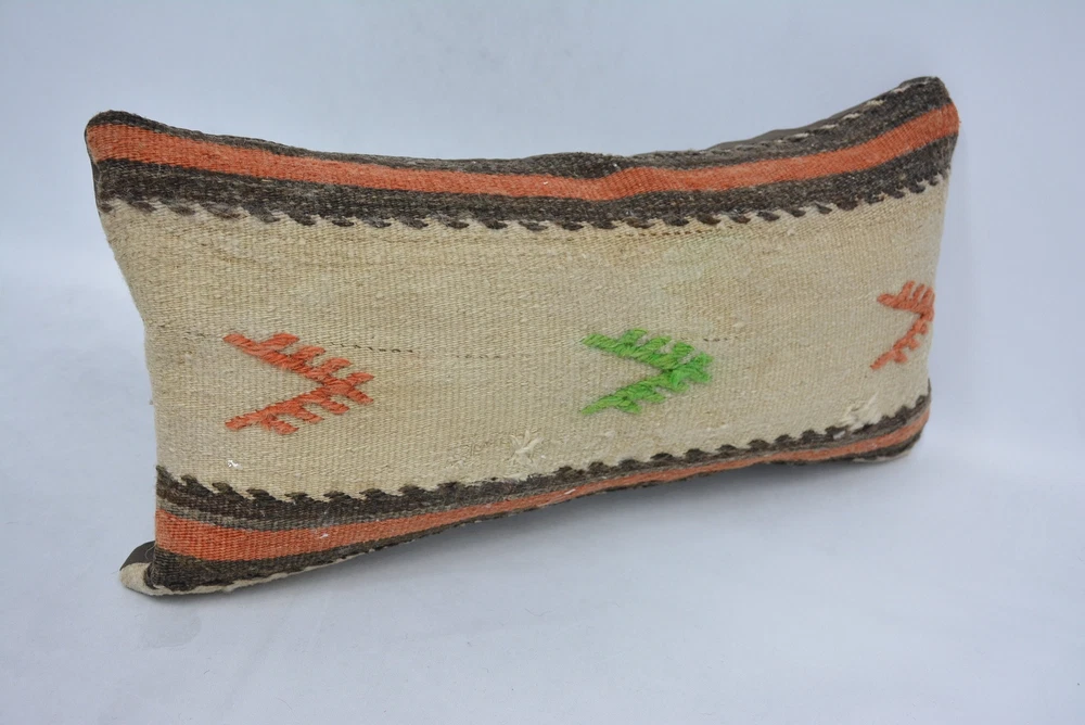Pillow for Couch, Kilim Pillows, 12"x24" Beige Pillow, Kilim Pillow Cover