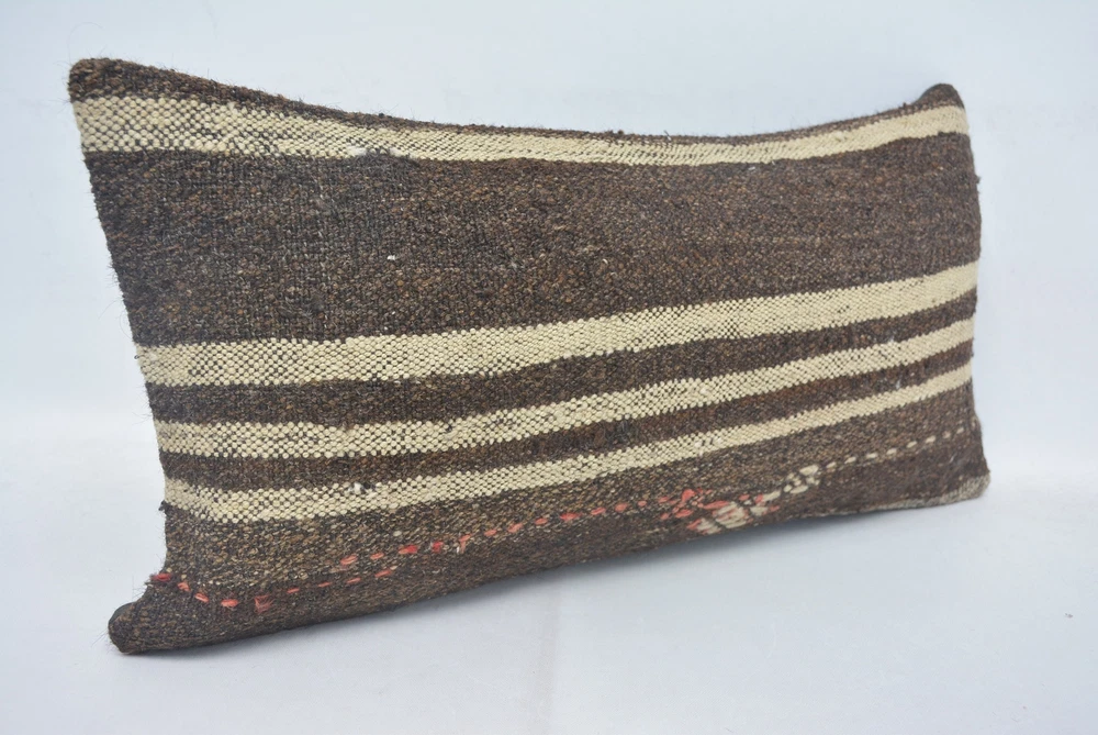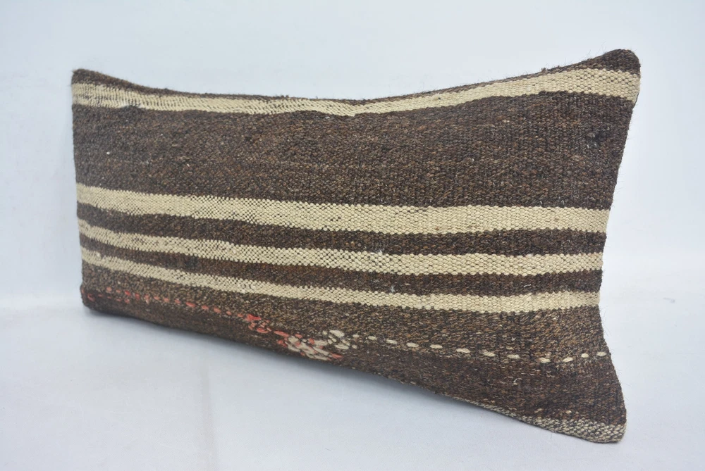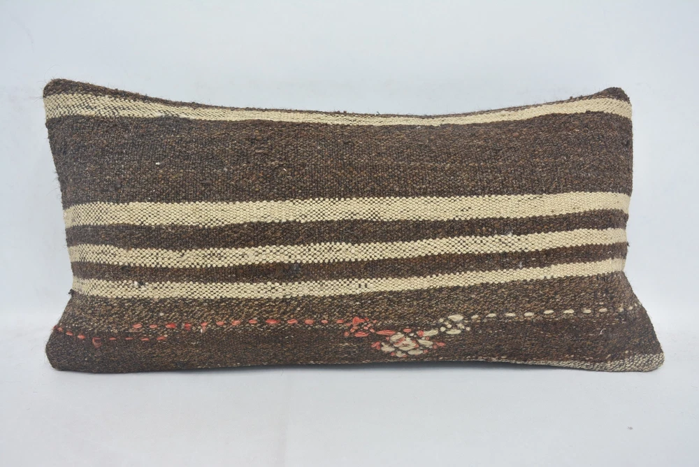 Pillow for Sofa, 12"x24" Brown Pillow Case, Throw Pillow, Kilim Pillow