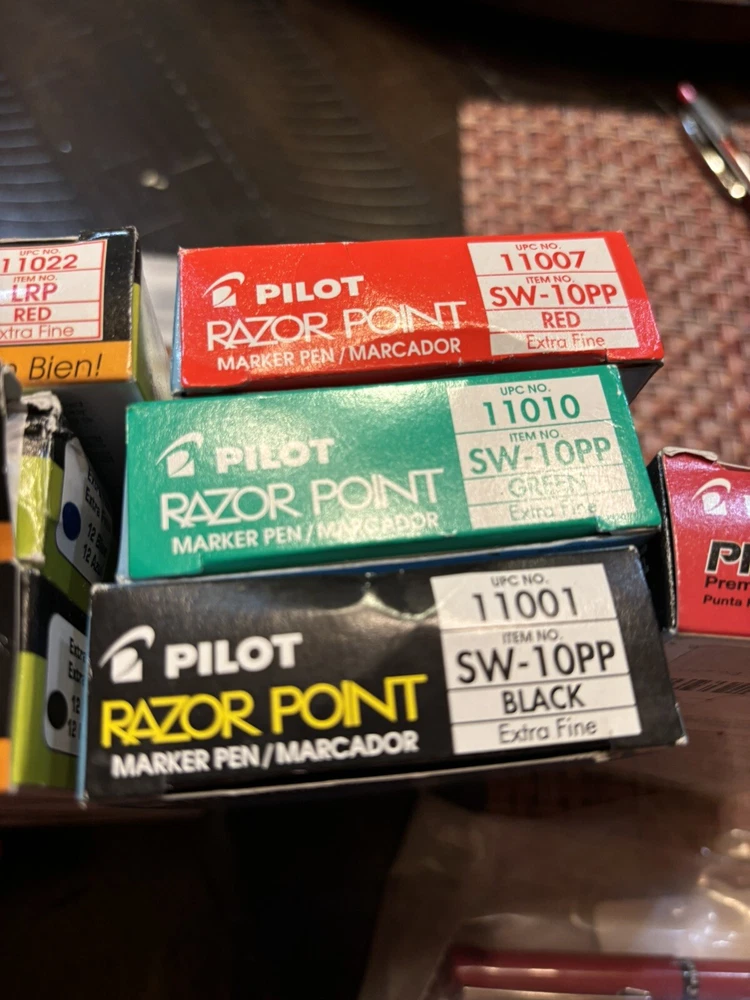 Pilot Razor Point Marker Pen Lot. Red/blue/green/black 3 Styles Extra Fine Pt.