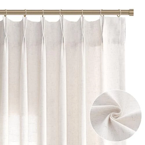 30 Days Return Policy Fast Delivery Trusted seller Natural Beige Pinch Pleated Semi Sheer Linen Curtains 102 Inch Length 2 Panels for Living Room Bedroom Cream Colored Boho Room Decor Light Filtering Back Tab Pinch Pleat Window Drapes 102 Long Product Description Pinch Pleated Design: Combine elegance with functionality, featuring intricate pleats for light control and a tailored appearance. Their versatility fits diverse decors, and secure pleating promotes durability and easy care, offering both aesthetic and practical advantages over standard curtains Natural Linen Blend: Crafted from a mix of 30% natural linen and 70% polyester custom fabric, our window curtains display a gentle, natural delicate appearance and a comfortably cozy vibe. The flax textured surface adds visual allure and a hint of elegance Enjoy Versatile Hanging Options: Tailor the installation to your preference. Opt for Method 1 and 2 with our hooks and back tapes on the back of curtain to creat an modern and luxury pleated effect. Method 3 use your clip rings for effortless convenience Softening Sunlight and Privacy: Softly diffusing glare and the right amount of harsh sunlight, enabling a gentle breeze to permeate your space, linen drapes in neutral tones ensure a degree of privacy. The semi sheer fabric lets you relish your space while safeguarding your private moments from external scrutiny Effortless Maintenance and Timeless Style: Easily launder in cold water, tumble dry on low, and iron on the gentlest setting if necessary. Fabric exudes a classic and timeless aesthetic with diverse home decor styles, be it modern farmhouse, rustic, or boho chic Shipping Returns Payment Shipping Shipping is FREE to all addresses other than APO/PO boxes in the lower 48 states. All our stock ships from US-based warehouses. Shipped via USPS or UPS (depending on location and package weight) Unless stated otherwise, all orders will ship within 24-72 hours of your payment being processed. Check our feedback to see the great reviews of FAST shipping we offer. Returns As our valued customer, we will do our best to make sure the product you receive arrives to you on time and as expected. If you are not satisfied with your purchase, please contact us within 30 days of receiving your order to process a return. Payment We currently accept payment via eBay managed payments only. Once payment is cleared, we will dispatch your shipment within 1-3 business days. Please refer to the "Shipping" tab for more information regarding shipping speed to your destination.