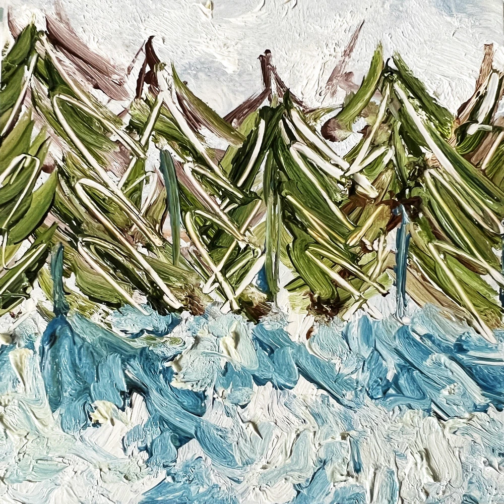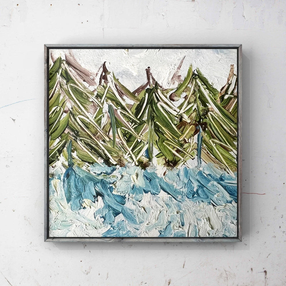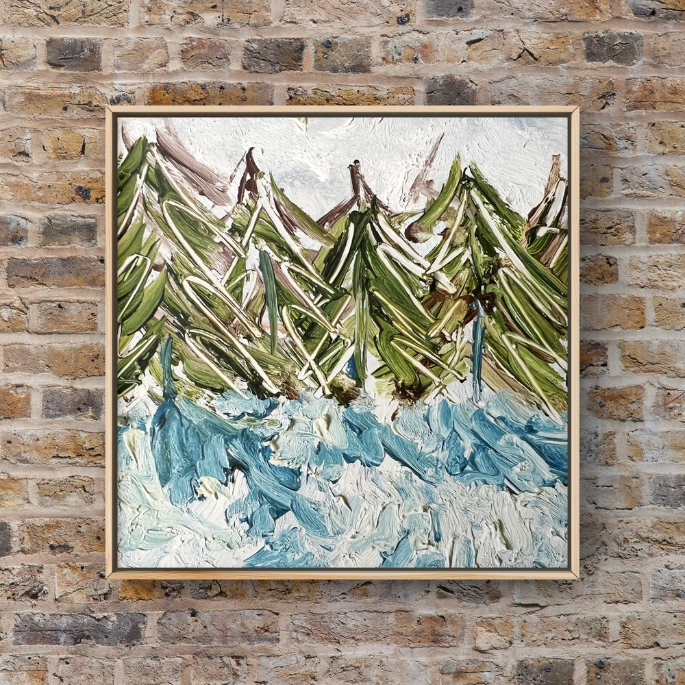 Pine Trees Oil Painting Christmas Tree Art Winter Landscape Abstract Painting