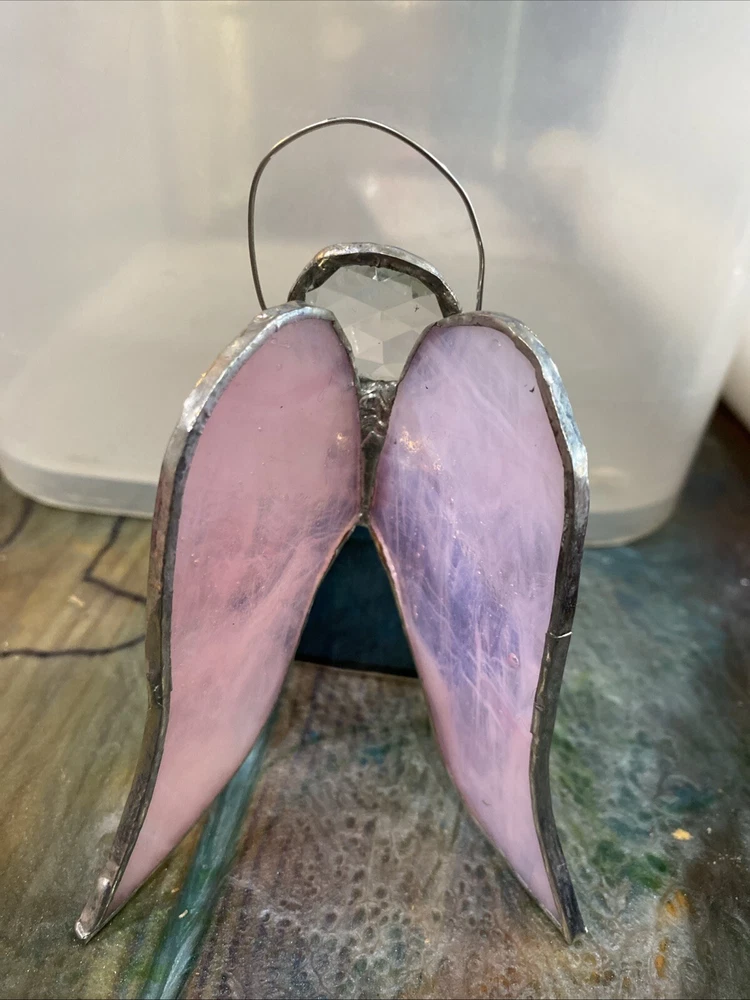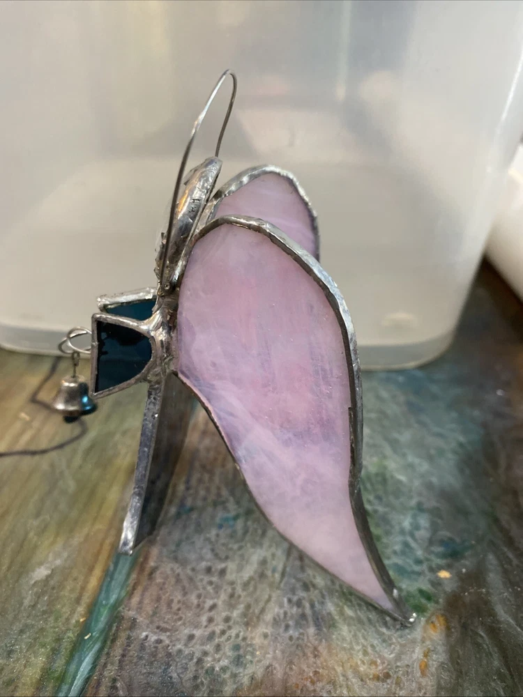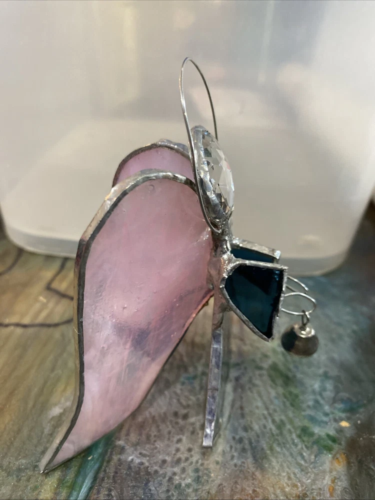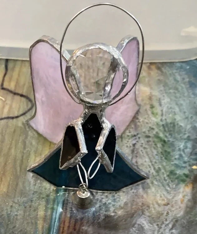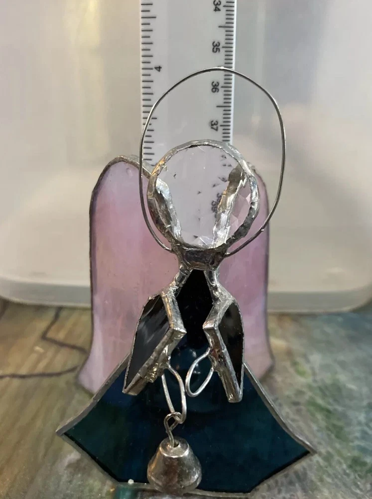 Pink And Green Stained Glass Angel Christmas Ornament With Bell 4” tall missing hanger. Shipped USPS ground mail. From a dog and kid friendly home. Please don’t hesitate to contact me with any questions or concerns