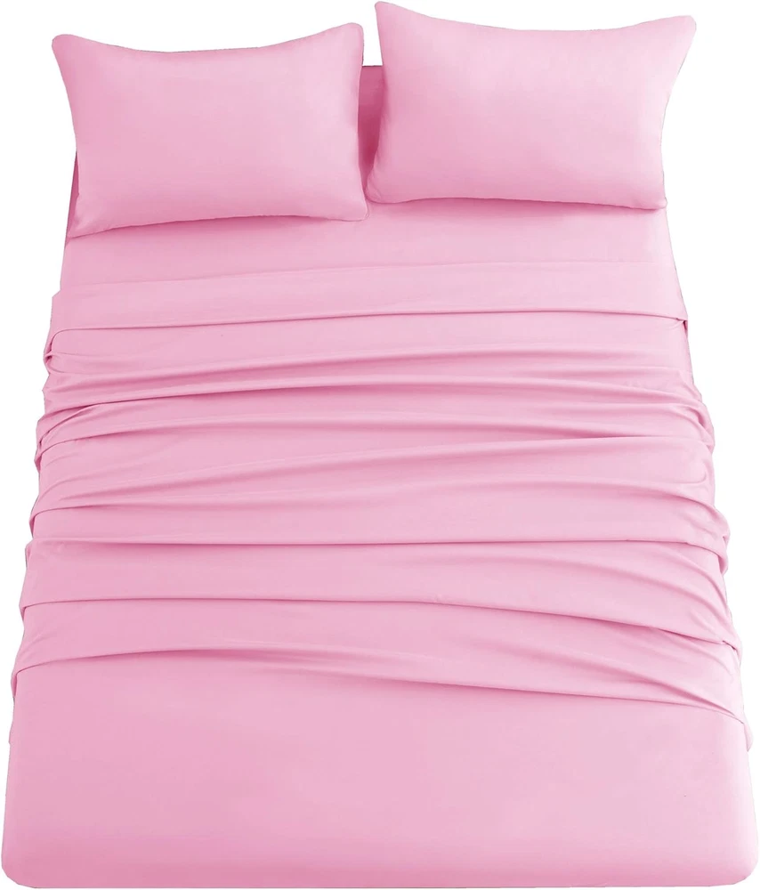 Store New Arrivals Add to Favorite View Feedback Contact Fast deliveries to the customer's home Quality customer service John Make the customers happy! Pink Bed Sheet Set with Deep Pocket,Super Soft Microfiber Bedding-Breathable,Warm,Wrinkle,Fade Free,4 Piece Bedding Sheet Sets(Queen,Pink) Description HIGH QUALITY BEDDING SHEETS-made of microfiber polyester.Sheets are softer and more breathable.It also gives you a comfortable sleep experience, which is the best experience for anyone. BENEFITS OF BEDDING-This bedding is made with high-quality knitting to make the sheets more secure and less prone to deformation. Breathable fabrics provide an excellent sleeping environment. This is very suitable for any room, such as bedroom, guest room, children's room, etc. WHAT YOU CAN GET-Full size luxury bedding sheet set-1 flat sheet(81" x 96"),1 fitted sheet(54" x 75" x 14"),2 pillowcase(20" x30").Deep pocket fitted sheet with elastic all around (not just the corners, like other sheets). Fits mattresses up to 14inch. EASY TO CLEAN AND CARE - our sheets are stain resistant, wrinkle resistant and faded. It can be washed in cold water and machine washed. It can also be dried. Care according to your needs. Product Description Ghooss Bed Sheets 4pack High quality bedding sheets are made of microfiber polyester.Sheets are softer and more breathable.It also gives you a comfortable sleep experience, which is the best experience for anyone. Premium Material Sheet Sets Microfiber polyester,softer and more breathable,stain resistant, wrinkle resistant,machine washable Elastic Band Fitted sheet Deep pocket fitted sheet with elastic all around 14" Deep Pocket Fits mattresses up to 14 inch 2 Pillowcases You can get 2 pillowcases Specific sizes for each bed sheets: Full:1 flat sheet(81"x96"),1 fitted sheet(54"x75"x14"),2 pillowcases(20"x30") Queen:1 flat sheet(102"x90"),1 fitted sheet(80"x60"x14"),2 pillowcases(20"x30") King:1 flat sheet(102"x105"),1 fitted sheet(78"x80"x14"),2 pillowcases(20"x40") Ghooss 4Pack Bed Sheet Set Better sheets,Better Sleeps Choose it will not woring! Style Contemporary Pillowcase Width 2E+1 Inches Pattern Solid Theme Pink Cartoon Character 4 Number of Pieces 4 Unit Count 4.0 Count Fitted Sheet Pocket Depth 14 Inches Pillowcase Quantity 2 Material Polyester Age Range (Description) Adult Seasons All Package Dimensions 12.36 x 11.5 x 3.58 inches Included Components Pillowcase, Flat Sheet, Fitted She Closure Type Zipper Item Weight 2.48 pounds Sham Quantity 2 Special Feature Deep Pocket, Breathable Color Pink Product Care Instructions Machine Wash Size Queen ABOUT US We offer the best prices around on high quality products. Our E-store includes media such as books, movies, music and games while offering electronics, toys, sporting apparel, clothing, tools, general home, garden items and more. SHIPPING We are always working hard to ensure your package arrives as soon as possible. Please understand that some factors like weather, high postal traffic, and the performance of shipping companies are outside of our control. We offer free shipping to the lower 48 states and ship within 2 business days of payment, usually sooner. We do not accept P.O. Boxes. Please provide a physical address. For shipping outside of the continental USA, we only use eBay's Global Shipping Program. The item is shipped to KY and then sent to the rest of the world. International customers are responsible for all duties and taxes. Continue to 'check out' to calculate costs for shipping the item to your country. Messages regarding eBay's Global Shipping Program MUST be directed at eBay EXCLUSIVELY. RETURNS We offer a 30-Day Return Policy on items in which you are not completely satisfied with. You have the option of a full-refund or an exchange of the item. No returns are available on items shipped outside of the USA PAYMENT We accept PayPal. CONTACT US This page content is yet to come Please ad us to your favorite seller and visit again later Thank You CUSTOMER SATISFACTION We try our very best to make sure every customer is completely satisfied. If there's a problem, message us! We're happy to help. WE ACCEPT