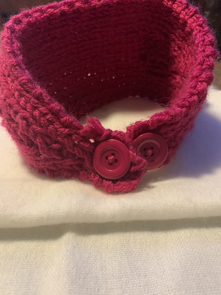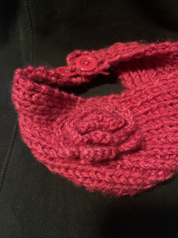 This crocheted ear warmer is a winter must-have! The soft pink color and cute flower bloom make it stylish and feminine, while the buttons ensure a snug, comfortable fit. It keeps my ears toasty without messing up my hair, and the design adds a sweet touch to any outfit. Perfect for chilly days—adorable and practical!