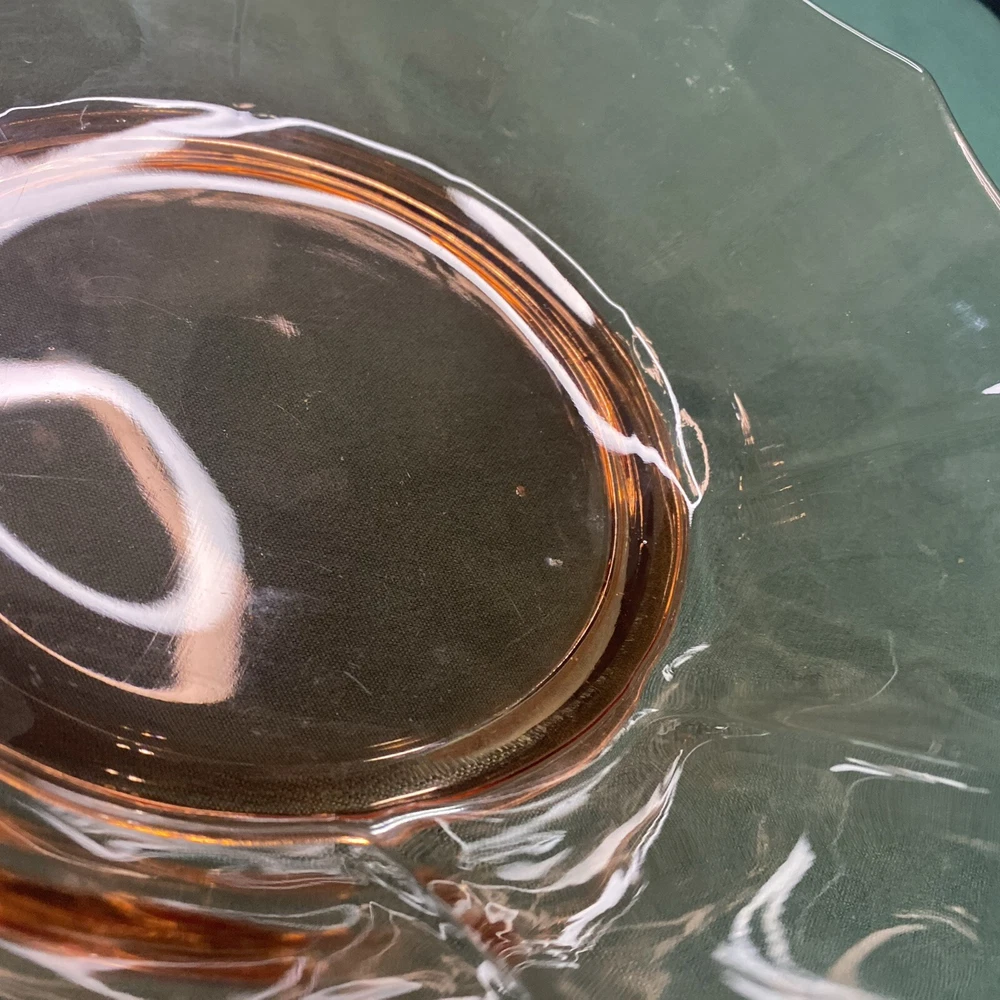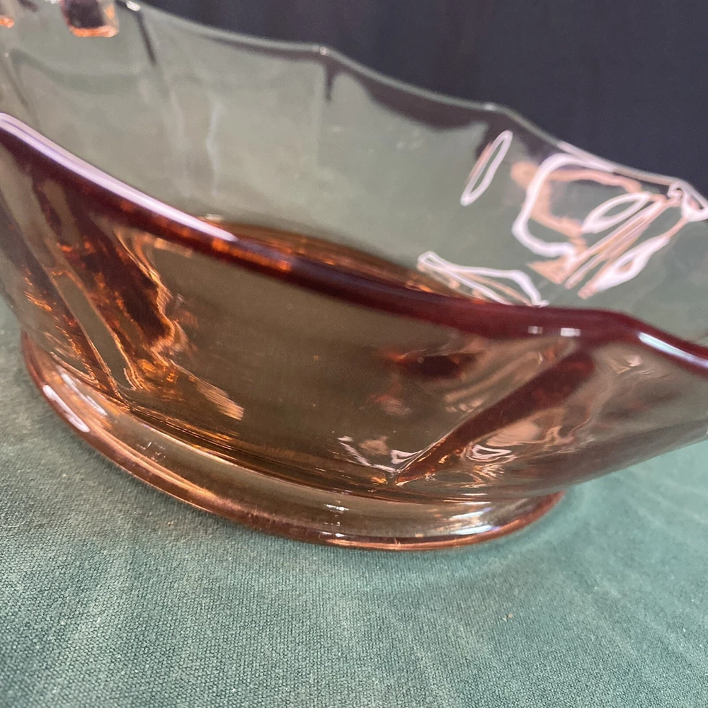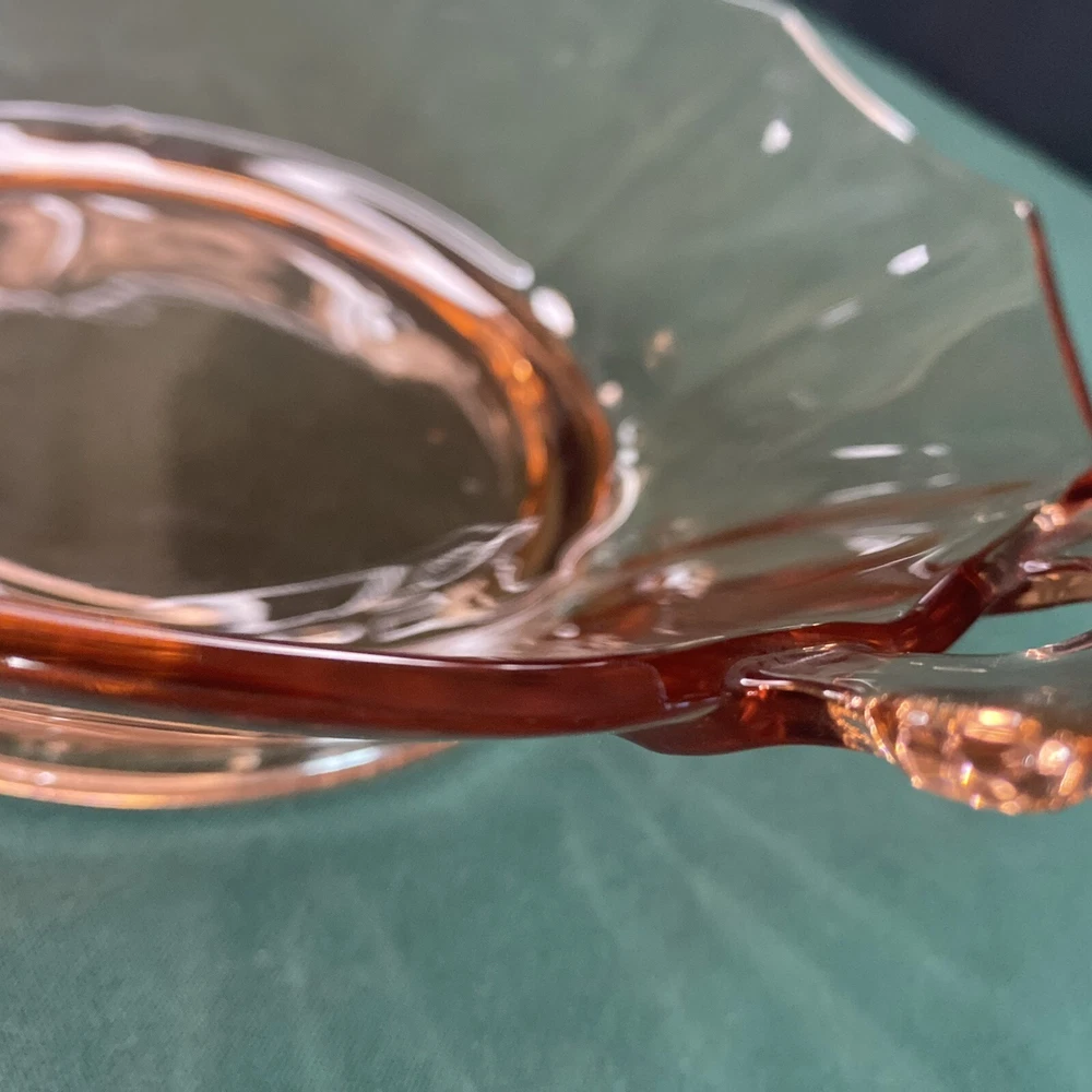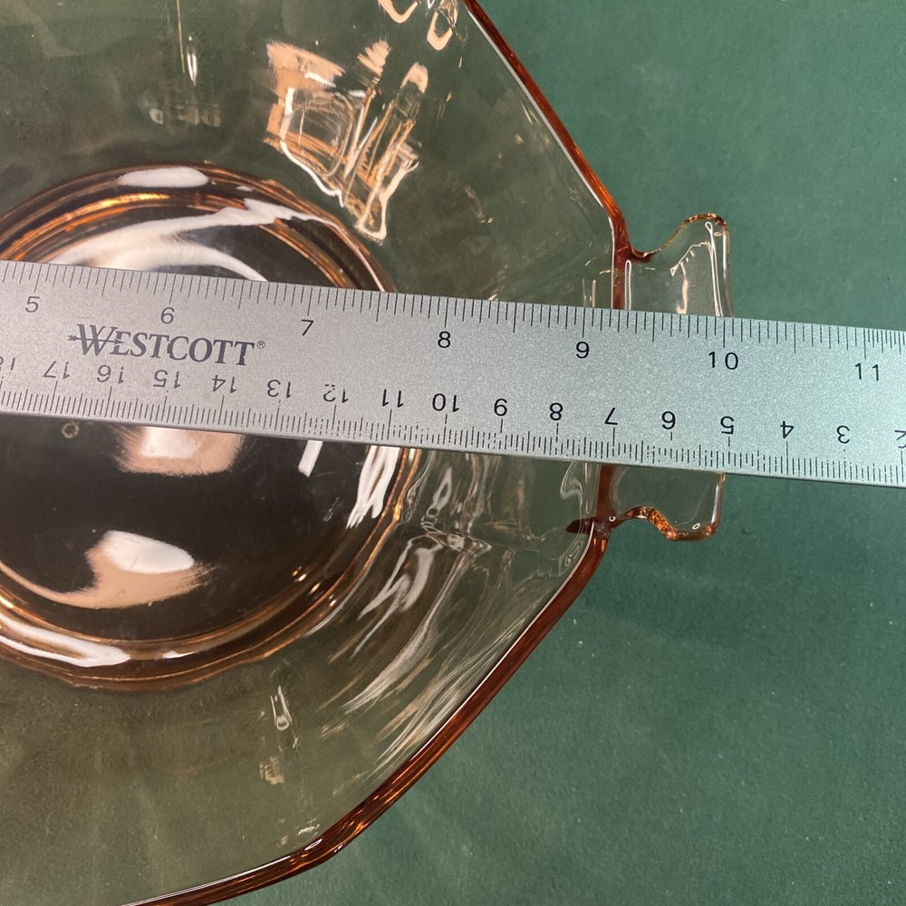 Embrace the elegance of the Art Deco era with this lovely 10" Pink Depression Glass Serving Bowl. The bowl features a striking pink hue that captures the eye and adds a touch of vintage charm to any table setting. Crafted from quality glass material, this serving bowl is perfect for those special occasions or to enhance your everyday dining experience. The unmarked brand adds an air of mystery to this piece, making it a unique addition to your collection. Whether used for serving salads, fruits, or as a decorative piece, this bowl exudes a timeless style synonymous with the Art Deco period. It's a must-have for enthusiasts of classic glassware and those who appreciate the beauty of bygone eras.