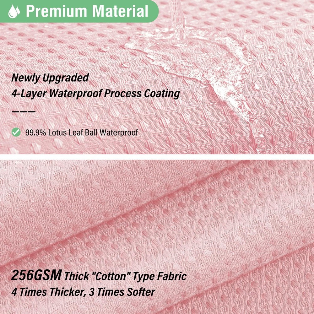 Elegant and Durable Fabric Shower Curtain with Waffle Weave ► PREMIUM QUALITY: 256 GSM heavy duty fabric shower curtain with waffle-weave pattern brighten up your bathroom with elegance and luxury. Simple design and fashionable appearance beautify your home decor. ► WATER REPELLENT: Hospitality standard and treatment for water repellent allows water to bead on the surface of the shower curtain. ► DURABLE: Extra Heavy duty fabric and tight hem keep the curtain from being torn up. Equipped with 12 rust-resistant metal grommets, this curtain enjoys lasting use. ► STANDARD MEASUREMENT: 72"x72" 72 x 72 72 inch wide shower curtain fits for your standard size. ► CARE INSTRUCTIONS: Machine wash cold; Gentle cycle; Don't bleach; Hang dry; No shrinkage, No deformation. 🚿【Dimensions】72W * 72H inch; 256GSM (Gram Per Square Meter), about 1.1 pounds heavier than normal 90GSM fabric shower curtains; 12 rust-resistant grommets that fit most standard shower hooks or rings. Package includes 1 Pink Waffle Shower Curtain and 12 Plastic Hooks. 🚿【Weighted Thick "Cotton" Fabric Shower Curtain】Made from expertly chosen and tested Heavyweight Polyester Fabric, touches like a cotton feel. Honeycomb waffle weave pattern adds elegance to your bathroom. 🚿【Hotel Luxury Spa 】"Three-proof" fabric, lotus leaf water-repellent, oil-repellent, and stain-repellent. Environmentally friendly and no smell. Heavy duty with weighted hem, keep it from billowing, extremely good at light transmission and providing privacy. 🚿【Elegant & Neutral Style】This waffle shower curtain will complement any bathroom - use at home, apartment, condo, hotel, camper, RV, dorm, shower, college dorm room, athletic club, gym and everywhere else you need a reliable shower curtain. Cloth fabric, machine washable and easy care. 🚿【Services】We are industry and trade integration, dedicating to offer stylish, quality products for our customers. If your arrives damaged in any way, we will send you a . If you have any problem about our products, please feel to .