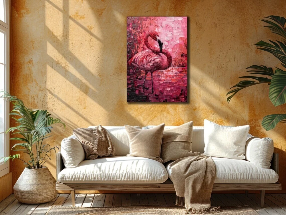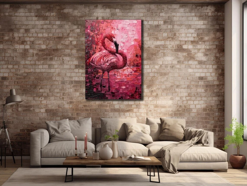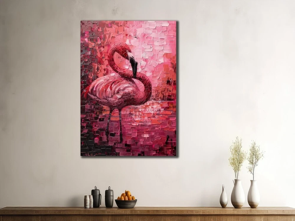 Pink Flamingo Bird Abstract Oil Paint Unframed Canvas Print Australian Wall Art