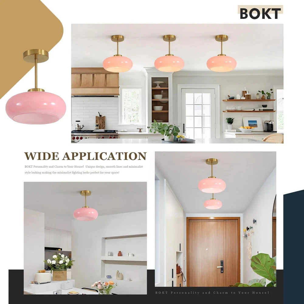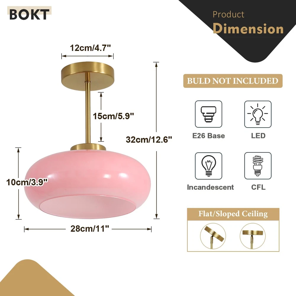 Store New Arrivals Add to Favorite View Feedback Contact Pink Glass Ceiling Lights Modern Semi Flush Mount Ceiling Light Fixture Dome Globe Close to Ceiling Light Mid Century Vintage Pendant Hanging Light for Hallway Entry Foyer Dining Room Description Item model number BC1125 Light Source Type LED, Fluorescent, Incandescent Style Modern Number of Items 1 Power Source AC Number of Light Sources 1 Control Method App Theme Modern Lighting Method LED Controller Type Push Button Unit Count 1.0 Count Room Type Hallway, Kitchen, Bedroom, Kids Room, Dining Room, Living Room,Lobby,Porch Switch Type Push Button Product Dimensions 12.6 x 11 x 12.6 inches; 5 Pounds Material Metal Required Assembly No Model Number BC1125 Installation Type Semi Flush Mount Additional Features Dimmable Specific Uses For Product Indoor use only Fixture Type Non Removable Material Type Metal Light Color pinkish warm Light fixture form Ceiling Bulb Base E26 Item Dimensions L x W x H 12.6"L x 11"W x 12.6"H Shade Color warm Mounting Type Ceiling Mount Color Pink Wattage 40 watts Indoor Outdoor Usage Indoor Shape dome Voltage 110 Volts Shade Material Glass Included Components Shade included Style Name Modern Light Fixture Form Ceiling ❤【Pink Glass Close to Ceiling Light Fixture】The unique design of the nordic style gold Semi Flush Ceiling Fixture is located within its pink bottom-open glass shade. This not only makes replacing light bulbs a breeze but also delicately refracts the light, scattering it evenly in every corner. This brings an elegant and beautiful artistic atmosphere to your space, continually adding a beautiful decoration to your life. ❤【Industrial Semi Flush Mount Ceiling Lamp Dimension 】The contemporary flush mount light height: 12.6”(32cm), pink glass width:3.9”(10cm),opening size: 11”(28cm), canopy: 4.7”(12cm). Light source: E26, voltage: 110-240V for worldwide. Fully adjustable color temperature when used with dimmable bulb (Both Not include) ❤【Perfect for Different Layer Height & Wide Application】The gold globe semi flush mount ceiling light design is simple and clear, making it suitable for ceilings of different heights. With no need for complicated installation, it can easily be embedded in the semi-recessed mounting base, ensuring a perfect fit whether your ceiling is high or low.The pink glass ceiling light is suitable for kitchen, hallway, bedroom, bathroom, mudroom, foyer, entrance and so on. ❤【Easy Installation & Bulb Type】 The Modern Ceiling Suspension Fixture comes with mounting hardware accessories and instructions designed to make installation quick and easy.This glass semi flush mount ceiling light suggest to takes E26 bulb(60W max), such as incandescent, CFL, LED, and halogen bulbs. ❤【Outstanding After-Sale Service】We offer 3-years great after-sale service about the modern glass globe Ceiling light fixture. If you receive broken, cracked, damaged glass globe lampshade, please feel free to contact seller via order number, we could send free. Product Description Modern Ceiling Light Fixture with Pink Glass Description: Name: Pink Glass Ceiling Light Style: Modern/ Mid Century/ Farmhouse/ Contemporary/ Nordic Material: Metal+Glass Color: Gold Length: 12.6”(32cm) Canopy Size: 4.7”(12cm) Light Source: E26 Type of Bulb: incandescent, LED, CFL and halogen bulbs Pink Globe Glass Flush Mount Ceiling Light Fixture This glass semi flush mount ceiling light suggest to takes E26 bulb(60W max), such as incandescent, CFL, LED, and halogen bulbs. Pair with More Pink Lamps With 3-Light Globe Pendant Chandelier With Pink 5-Light Pendant Chandelier With Pink Table Lamp With Gold Sputnik 6-Head Chandelier Wide Application Bedroom Ceiling lights do not take up space on the floor or walls of the bedroom, making the room look tidier and suitable for bedrooms with limited space. Entryway The ceiling lamp can create a visual guidance effect at the entrance of the foyer, making the space appear more spacious and transparent. Living Room Ceiling lights can effectively enhance the overall atmosphere of the living room and create a comfortable and pleasant living environment. Balcony The ceiling lamp design is combined with green plants to beautify the balcony space and form a harmonious landscape. 1 Ceiling Lamp for Porch 2 Ceiling Lamp for Stairs 3 Ceiling Lamp for Kitchen 4 Ceiling Lamp for Bathroom 5 Ceiling Lamp for Indoor Pink Glass Close to Ceiling Light Fixture ABOUT US We offer the best prices around on high quality products. Our E-store includes media such as books, movies, music and games while offering electronics, toys, sporting apparel, clothing, tools, general home, garden items and more. SHIPPING We are always working hard to ensure your package arrives as soon as possible. Please understand that some factors like weather, high postal traffic, and the performance of shipping companies are outside of our control. We offer free shipping to the lower 48 states and ship within 2 business days of payment, usually sooner. We do not accept P.O. Boxes. Please provide a physical address. For shipping outside of the continental USA, we only use eBay's Global Shipping Program.The item is shipped to KY and then sent to the rest of the world. International customers are responsible for all duties and taxes. Continue to check out in order to calculate costs for shipping the item to your country. Messages regarding eBay's Global Shipping Program MUST be directed at eBay EXCLUSIVELY. RETURNS We offer a 30-Day Return Policy on items which you are not completely satisfied with. You have the option for a full-refund or an exchange of the item. No returns are available on items shipped outside of the USA. PAYMENT We accept PayPal. CONTACT US This page content is yet to come Please ad us to your favorite seller and visit again later Thank You CUSTOMER SATISFACTION We try our very best to make sure every customer is completely satisfied. If there's a problem, message us! We're happy t