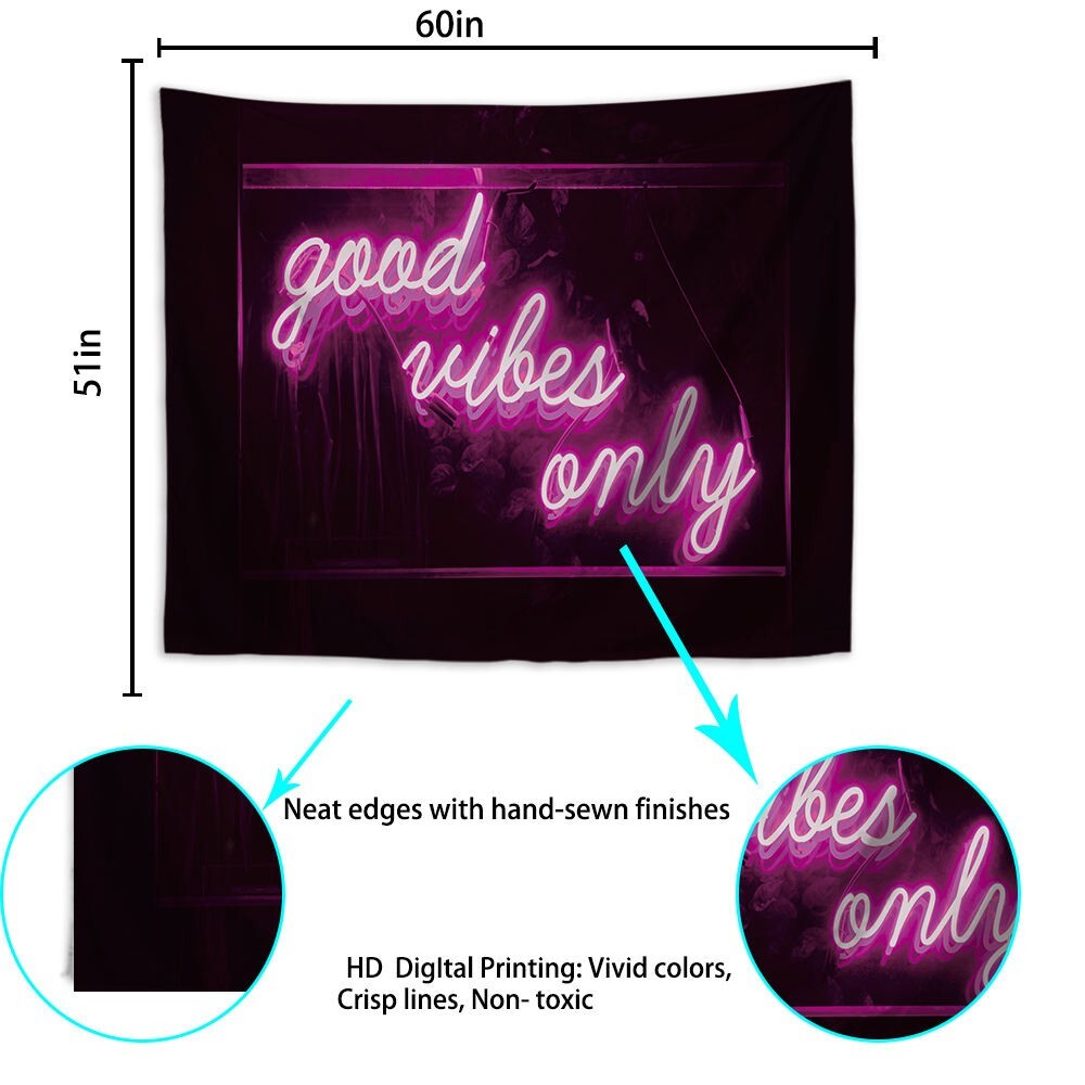 Cute Good Vibes Only Purple Tapestry Neon Sign for Aesthetic Dorm Room Wall Decor