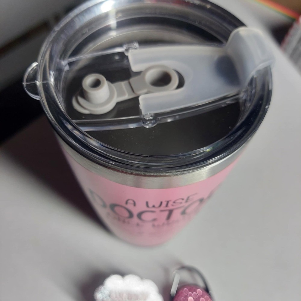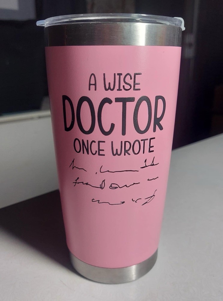 Pink "a wise doctor.." Tumbler with 2 pieces ID Badge Holders pink and "certified black cloud" Tumbler Travel Mug Personalized Tumbler A Wise Doctor Once Wrote w Tumbler Insulated Double Wall Travel Mug for Hot and Cold Stainless Tumbler with Lids and Straws Naughty Father's Day Gift for Grandpa for Home Novelty Design: With its Personalized A Wise Doctor Once Wrote w design, this tumbler mug is the perfect way to showcase your sense of humor and personality. Don't wait, grab yours today! Reliable to Apply: This tumbler with saying is made of quality stainless steel, no bad smell and reliable to use, sturdy and long lasting, not easy to rust and corrosion proof, you can use it with confidence, easy to clean and maintain, which can be applied for a long time. Perfect Gift: This cup stands out for both its functionality and funny design, making it a truly unique and unforgettable present