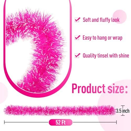Return Policy Fast Delivery Trusted seller Pink Party Decorations 52FT Pink Tinsel Garland with LED Lights Pink Birthday Hanging Garland USB Operated Pink Room Decorations for Party Tree Indoor Outdoor Decoration(Pink and White) Product Description Pink Party Decoration Sets: you will get 1 piece of 52ft metallic pink and white Christmas tree garland, 1 piece 65ft 200 LED USB fairy lights with remote twinkle string lights, the pink tinsel garland with lights can add strong atmosp for your pink room decor Durable Pink Room Garland Quality: the pink tinsel garland is made with quality tinsel with shine, simple and elegant, thick version with 3.5 inch in width, easy to form any shape of hanging or wrapping; Long enough to decor your pink birthday party or room LED USB Twinkle String Lights: fairy lights are in USB plug-in design, does not need to frequently replace the battery, and you can use the fairy lamp with mobile power anyw; The fairy lights with remote come in 8 different lighting modes and timing function Ideal Pink Party Supplies: the design of pink party tinsel decorations garland and fairy lights with remote can be applied for any occasion, multifunctional tinsel garland is applied to add warmth and charm to any festive atmosp; The pink room birthday decor garland with lights is very suitable for birthday parties, Christmas parties, New Year's, wedding parties, etc Personalized Pink Decorations: gently shake tinsel garland glitter or blow pink garland with the hair dryer when you receive garland pink party decoration, and you'll have a fluffy and beautiful light up garland; Meanwhile, fairy lights for bedroom and Christmas garland can be applied separately to decorate the indoor and outdoor or can be applied together as a holiday or party decoration, the combination of the two can be applied as a pink birthday decoration Shipping Returns Payment Shipping Shipping is FREE to all addresses other than APO/PO boxes in the lower 48 states. All our stock ships from US-based warehouses. Shipped via USPS or UPS (depending on location and package weight) Unless stated otherwise, all orders will ship within 24-72 hours of your payment being processed. Check our feedback to see the great reviews of FAST shipping we offer. Returns Seller does not accept returns Payment We currently accept payment via eBay managed payments only. Once payment is cleared, we will dispatch your shipment within 1-3 business days. Please refer to the "Shipping" tab for more information regarding shipping speed to your destination.