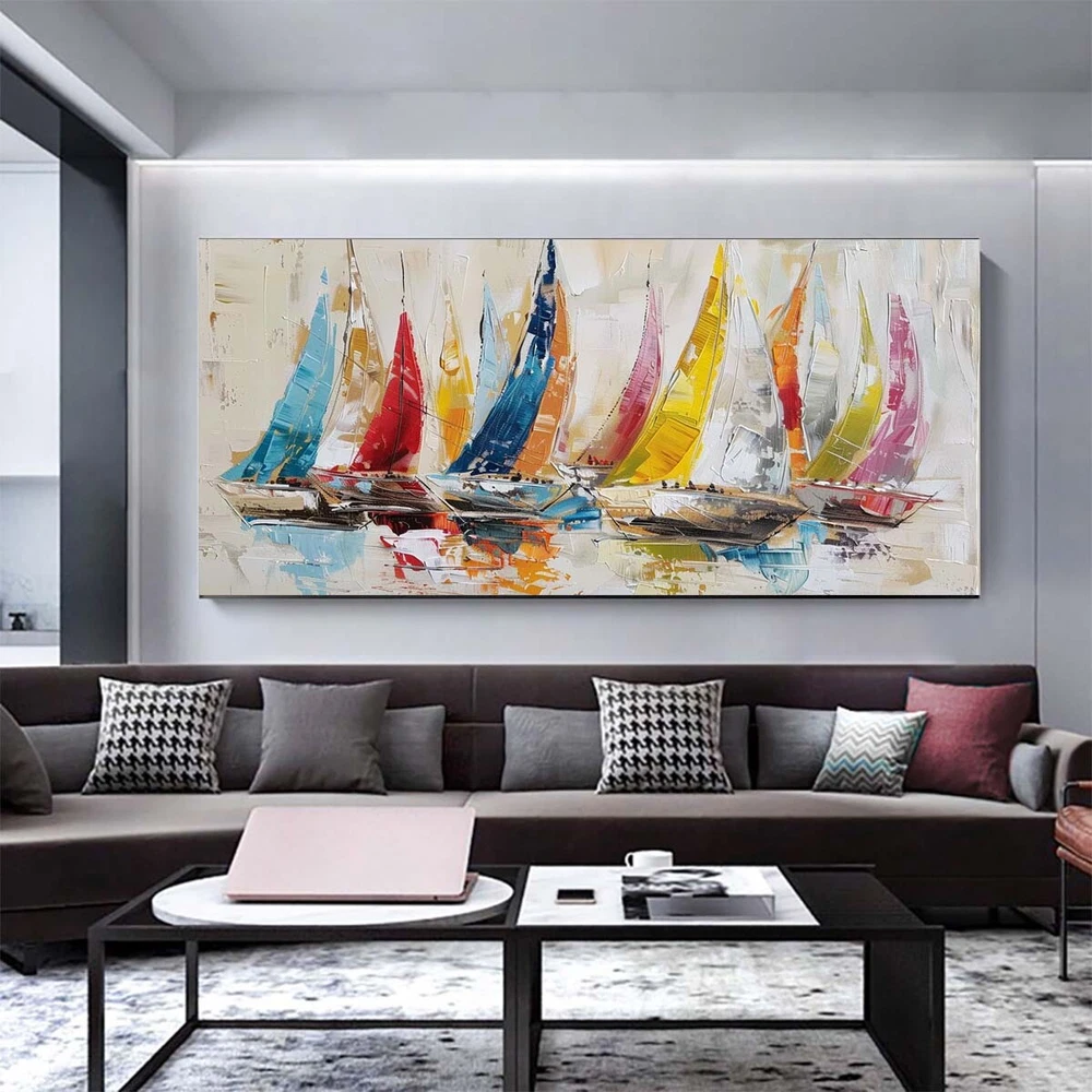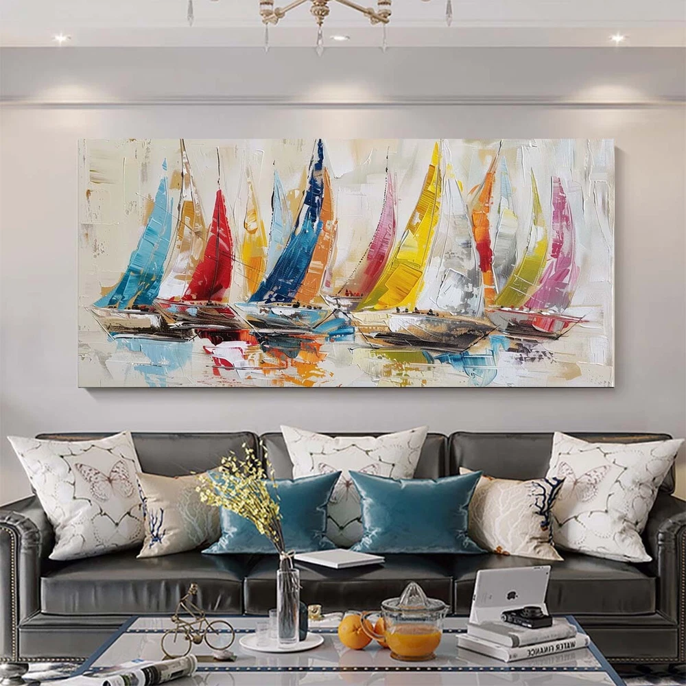 Pink Red Wall Art HandPainted oil painting on canvas Ship Abstract Living Room