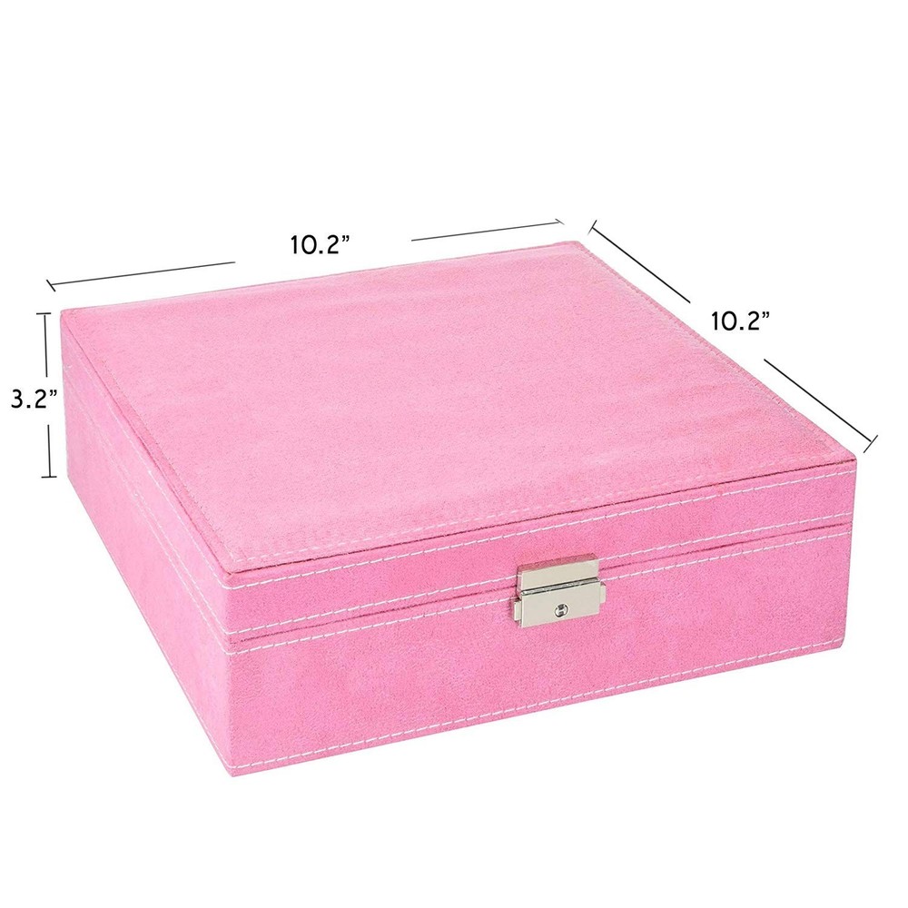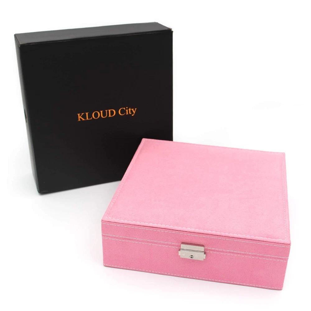Two-Layer Jewelry Box Organizer Display Storage case with Lock (Pink) Product Details Color: Pink Brand: KLOUD City MPN: KC004 UPC: Does not apply EAN: Does not apply Color: Pink Brand: KLOUD City Material: metal, aluminium, aluminium Engineered Wood Style: Elegant Special Feature: Removable Recommended Uses For Product: Necklace, Ring, Earring Product Dimensions: 10.2"D x 10.2"W x 3.2"H Target Audience: Women, Girls Shape: Square Occasion: Mother's Day, Christmas, Wedding, Anniversary, Birthday, Valentine's Day Color: Pink Brand: KLOUD City Material: metal, aluminium, aluminium Engineered Wood Style: Elegant Special Feature: Removable Recommended Uses For Product: Necklace, Ring, Earring Product Dimensions: 10.2"D x 10.2"W x 3.2"H Target Audience: Women, Girls Shape: Square Occasion: Mother's Day, Christmas, Wedding, Anniversary, Birthday, Valentine's Day Mounting Type: Table Top Finish Type: Polished Inner Material: Metal, Aluminium, Engineered Wood Closure Type: Snap Number of Compartments: 28 Jewelry Storage Type: Jewelry Case Number of Items: 1 Manufacturer: KLOUD City Item Weight: 2.6 pounds Item model number: KC004 Is Discontinued By Manufacturer: No Finish types: Polished Batteries required: No Dimensions (L x W x H): 10.2" x 10.2" x 3.2". Highest quality materials and craftsmanship were used to create this box Two-layers and removable design provides more space.Earrings, rings, brackets, necklaces can be held. Perfect for storing small items such as earrings, rings, beads, etc. There are 9 removable slots under the tray for storing larger bracelets or other infrequently worn jewelry. With elegant appearance and considerate design this display box for jewelry is pefect gift for birthday ,Christmas ,wedding day, Valentine's Day ,Mother's day, Anniversary Day