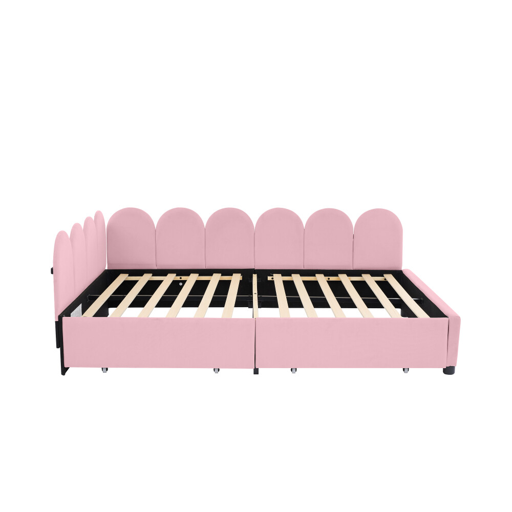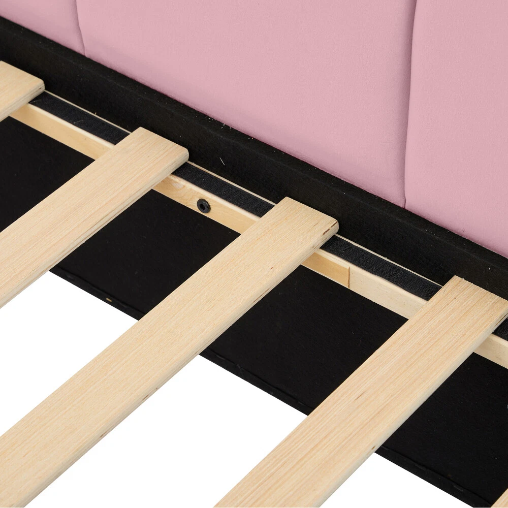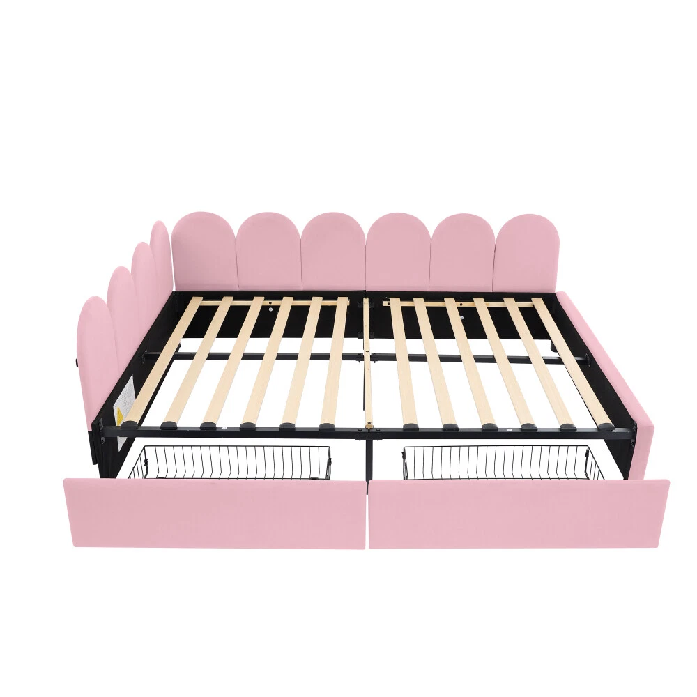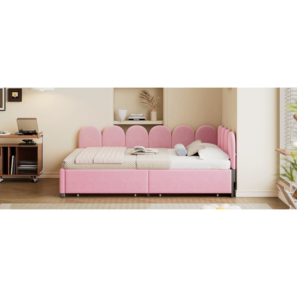 Comfortable Fabric: This upholstered daybed is made of selected velvet, soft fabric headboard provides a comfortable and warm sleeping environment. Elegant Design: This daybed is not only suitable for any home decoration, but also loved by children.The diagonal design of the headboard allows this bed to be placed in a corner, saving space and making it more comfortable. 2 Large Drawers: This daybed has 2 drawers for storing clothes, books, toys, etc. It is very practical and makes full use of the space. Solid Construction: Made of high-quality MDF, the frame of this bed is not easy to be affected by humidity change and lead to crack. The strong legs, wide boards and 12 slats for bed, not only improve the weight capacity of the bed greatly but also ensure the stability. Dimensions and Assembly: Overall Product Dimension: 78"L X56.2"W X 27.69"H. Suitable for full size mattresses. Full size Upholstered Daybed with 2 Drawers, Velvet Sofabed with Soft Fabric Headboard, Rose Red This daybed is made of selected velvet, elegant white,rose red or pink, with tufted shape headboard, elegant and cute, not only suitable for any home decoration, but also loved by children. A soft fabric headboard provides a comfortable and warm sleeping environment. This daybed is a valuable choice as it does not require a box spring or foundation. Just place your mattress on top and enjoy it. With our daybed, relaxation meets efficiency, making it the perfect addition to any modern home.