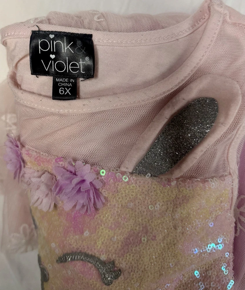 Absolutely magical Pink & Violet girls tutu dress featuring a shimmering sequin bunny face bodice with glitter ears and floral detail β paired with a soft pink layered tulle skirt adorned with white glitter daisies and bunny silhouettes πΈβ¨ This is the perfect statement dress for Easter, spring photos, birthdays, school parties, or bunny-themed events π£π Brand: Pink & Violet Size: 6X Color: Blush pink with pastel sequin bodice Features: β’ Sleeveless design β’ Sequin bunny face with glitter details β’ 3D floral accents at neckline β’ Soft mesh overlay at top β’ Multi-layer pink tulle skirt β’ White glitter bunny & floral print on skirt β’ Fully lined β’ Pull-on style Measurements (approx. laid flat): β’ Chest: ~12β across β’ Waist: ~11.5β12β across β’ Total length (shoulder to hem): ~27β28β Condition: Good pre-owned condition. Light wear consistent with normal use. No major stains or tears noted. Sequins intact and skirt remains full and fluffy. Please review all photos for full details. Such a sweet, twirl-worthy piece β whimsical, sparkly, and perfect for springtime magic π·β¨ Keywords Pink & Violet dress, girls 6X dress, Easter bunny dress, spring tutu dress, sequin bunny dress, girls party dress #GirlsFashion #EasterDress #BunnyDress #SpringStyle #LaBelleAdy π» LaBelle Ady β Vintage Beauty, Reimagined π»