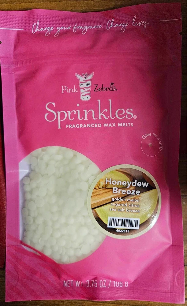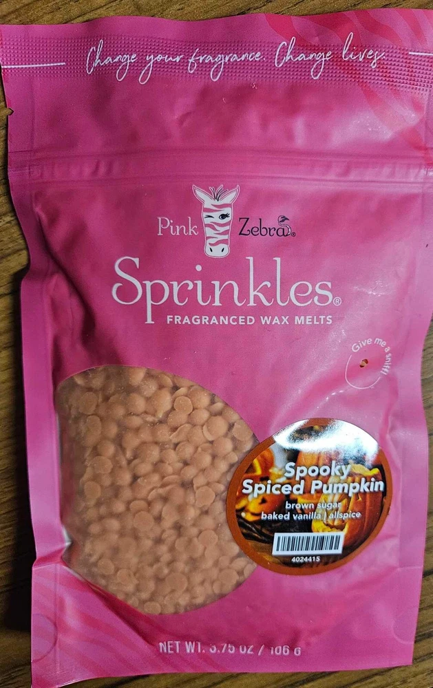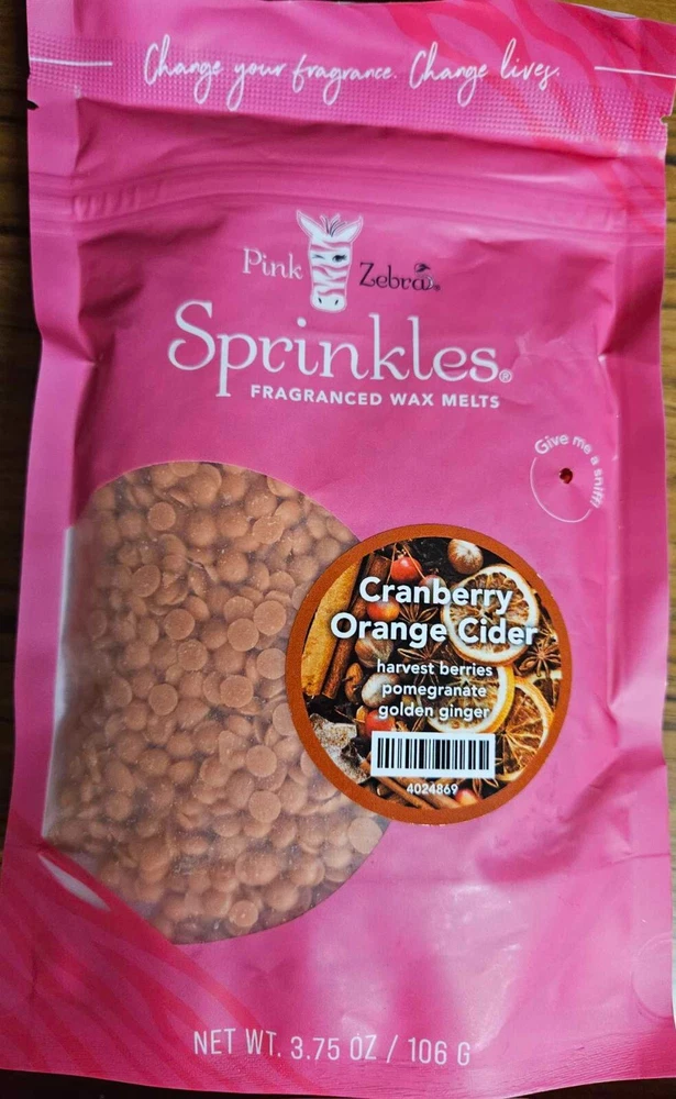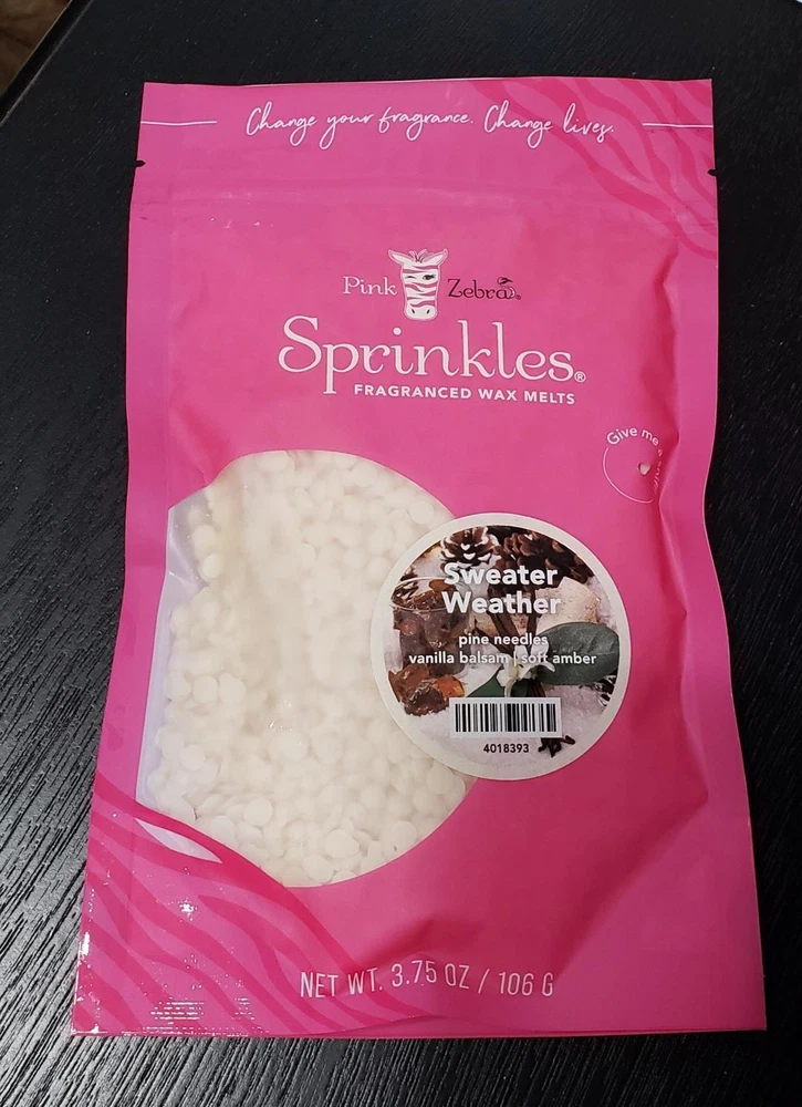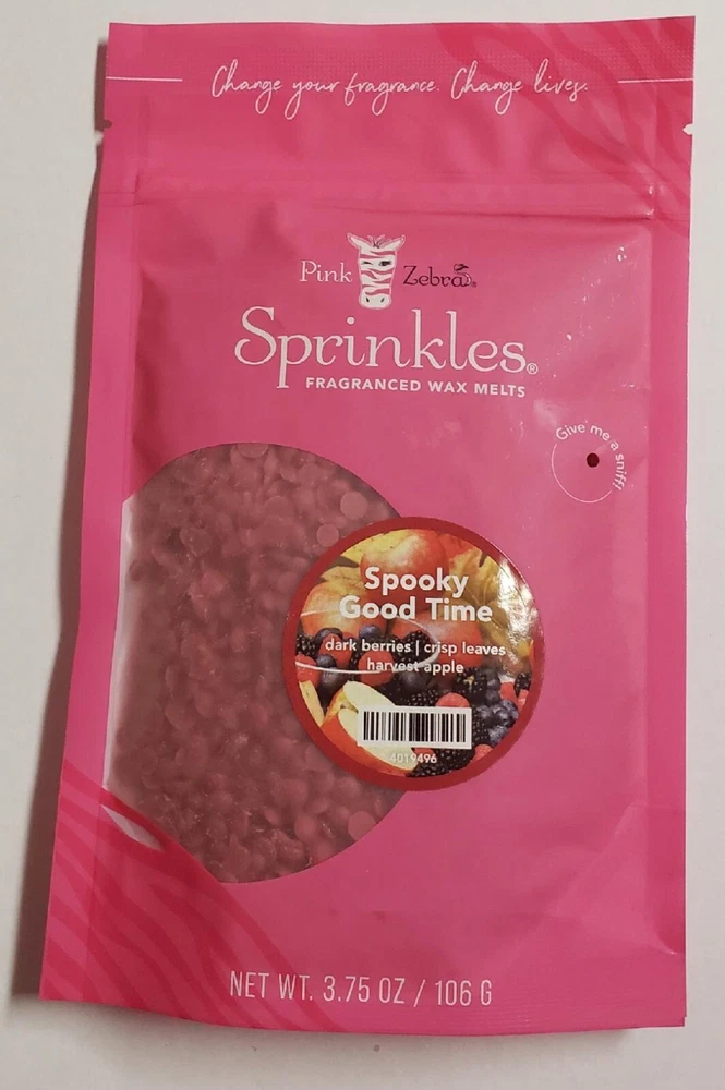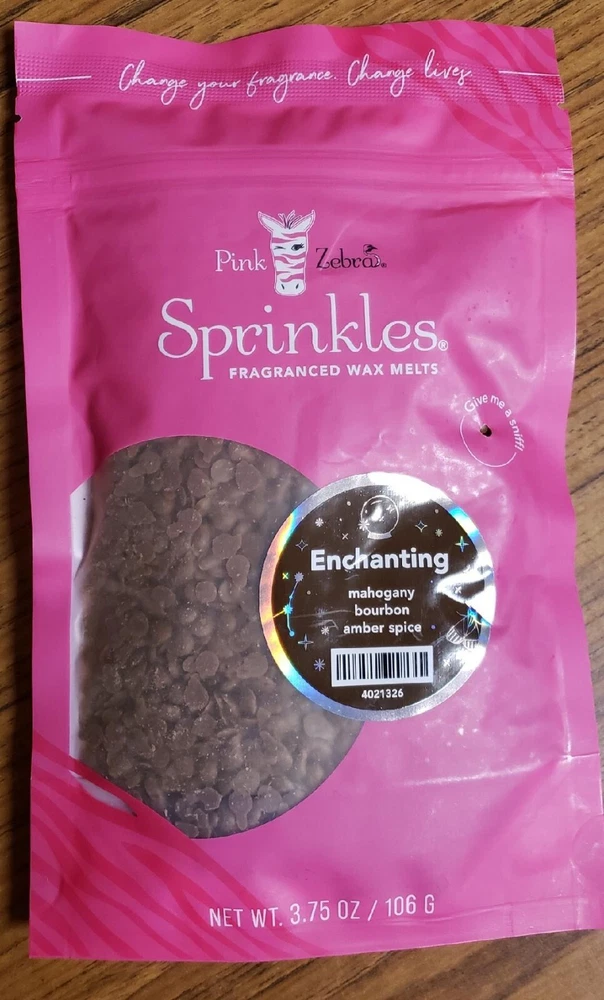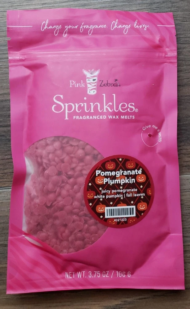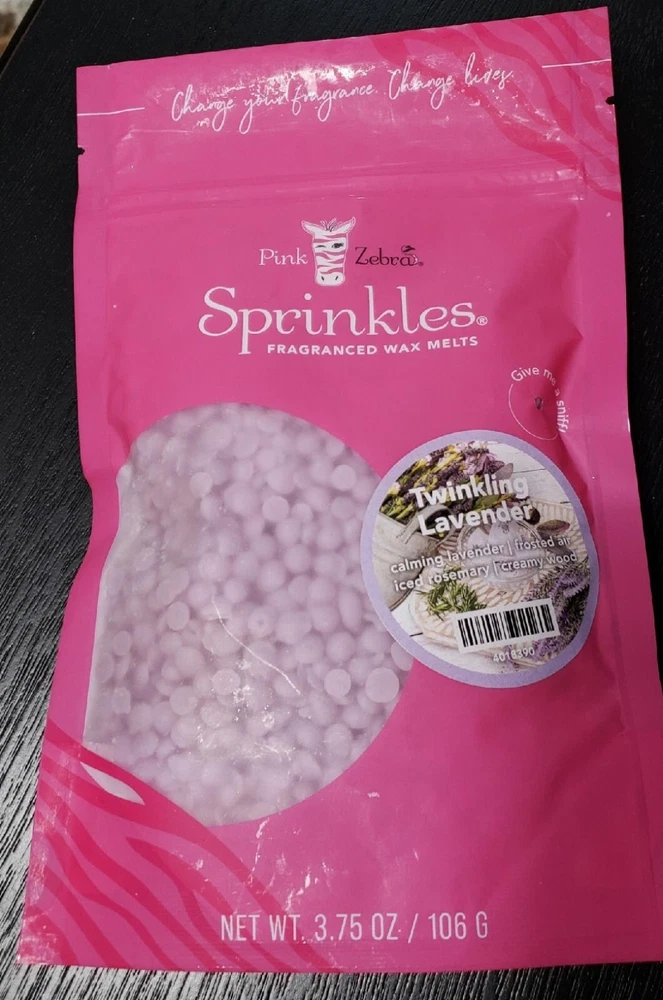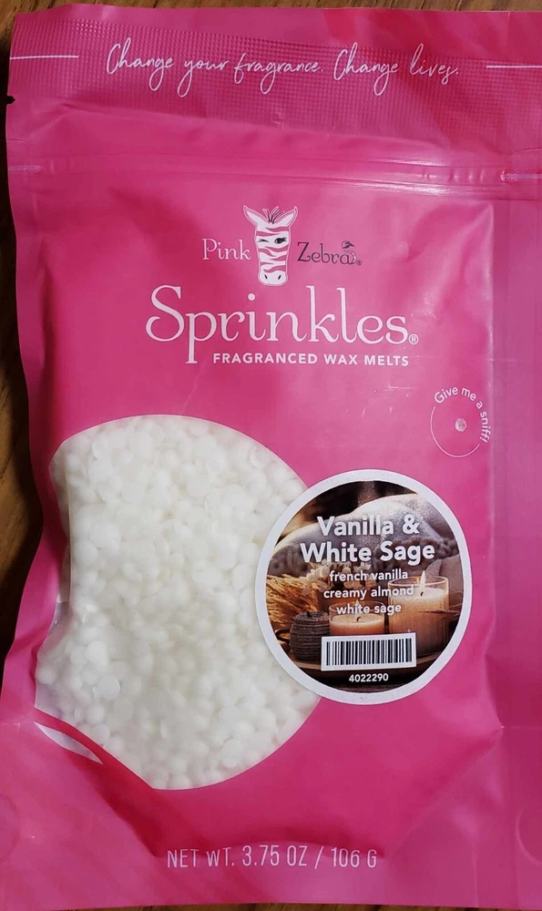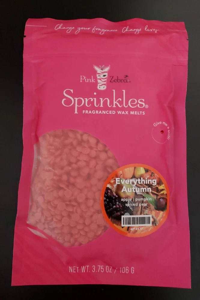 Pink Zebra Soy Wax Sprinkles - Enjoy a variety of different scents available. Each fragrance is in a Factory Sealed Pink Zebra resealable bag and factory pre-filled and weighed to 3.75 - 4 oz. or about 11-12 scoopfuls of wax sprinkles. Bag appearance may vary but all are Factory sealed. These soy wax sprinkles offer an incredible amount of scent in a very tiny package. Just barely cover the bottom of your warmer and fill your home with amazing scents. Any of these wax Sprinkles can be mixed together to form all new Recipe combinations!! No other items pictured will come with your purchase. Discounted shipping with each additional purchase ! Limited quantities of each scent available. No longer a current rep. and selling inventory that is left.