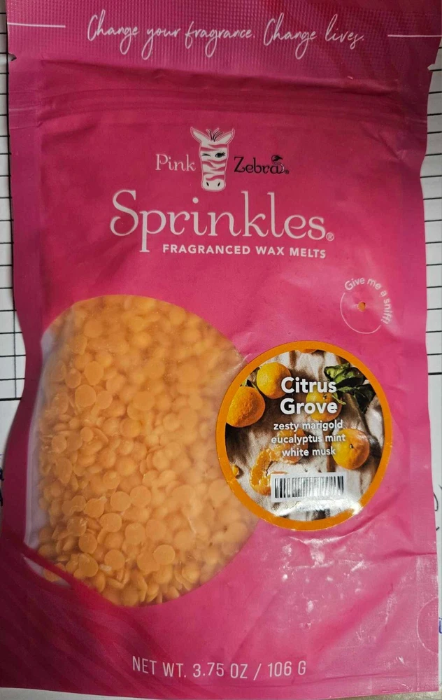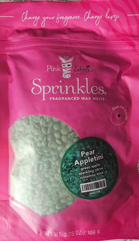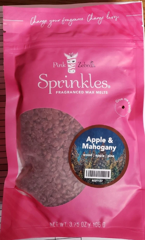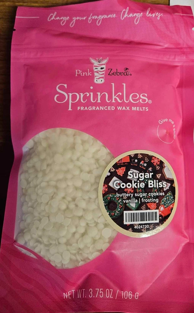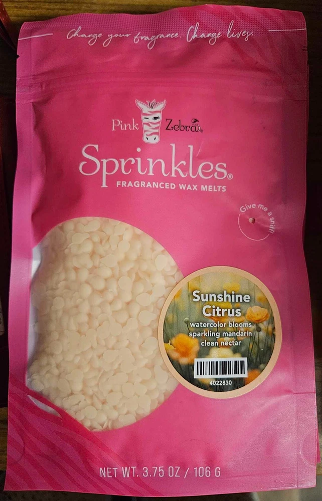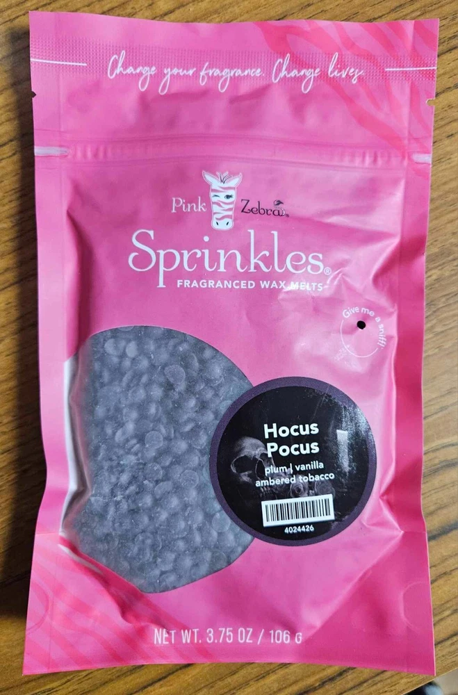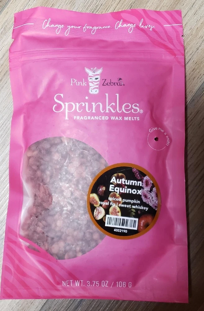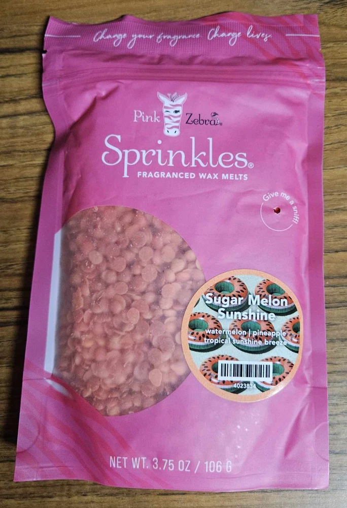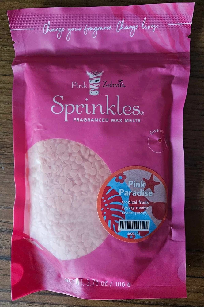 Pink Zebra Soy Wax Sprinkles - Enjoy a variety of different scents available. Each fragrance is in a Factory Sealed Pink Zebra resealable bag and factory pre-filled and weighed to 3.75 - 4 oz. or about 11-12 scoopfuls of wax sprinkles. Bag appearance may vary but all are Factory sealed. These soy wax sprinkles offer an incredible amount of scent in a very tiny package. Just barely cover the bottom of your warmer and fill your home with amazing scents. Any of these wax Sprinkles can be mixed together to form all new Recipe combinations!! No other items pictured will come with your purchase. Discounted shipping with each additional purchase ! Limited quantities of each scent available. No longer a current rep. and selling inventory that is left.