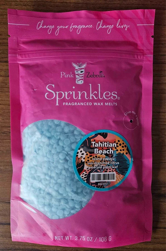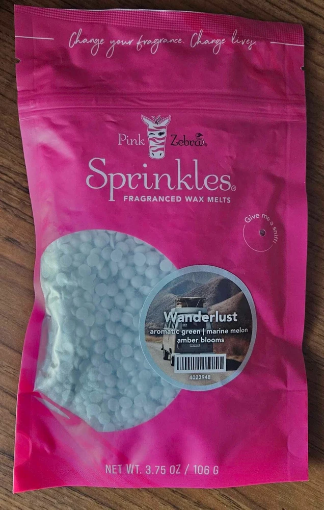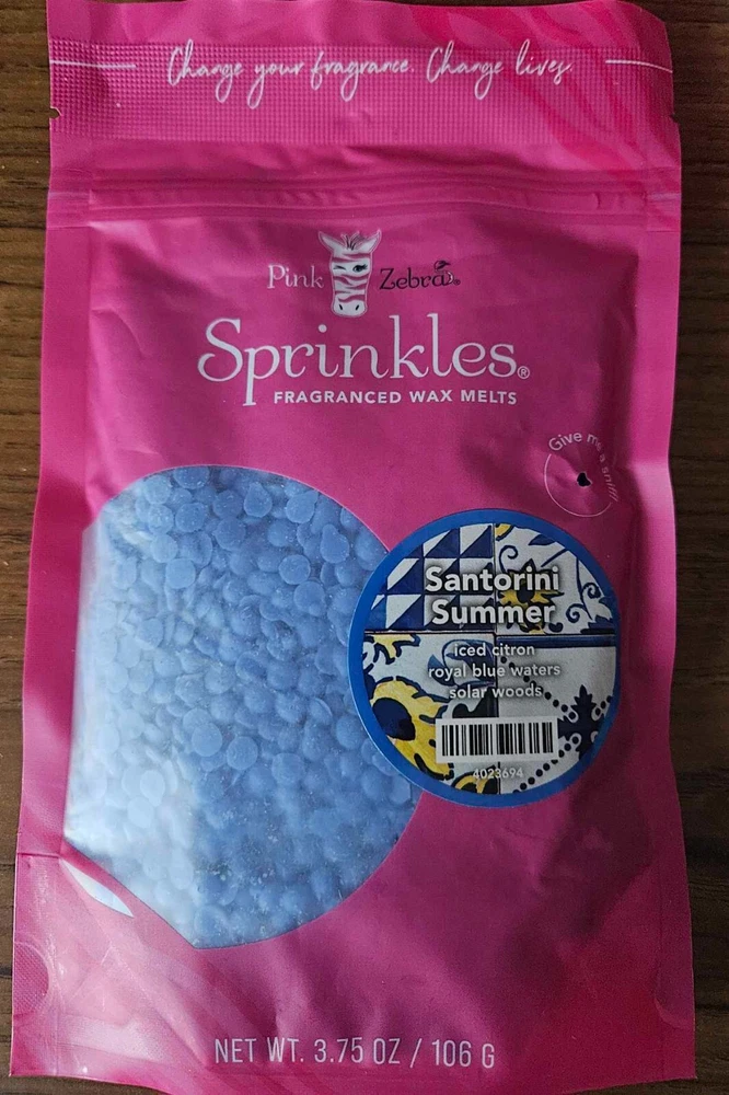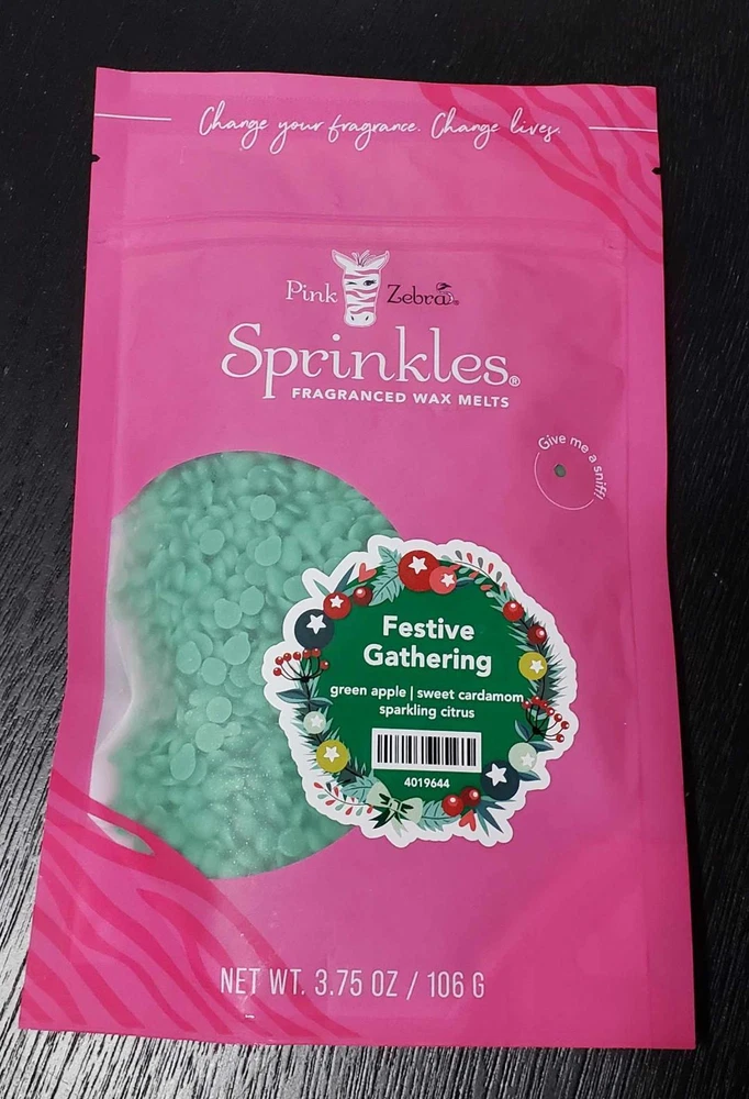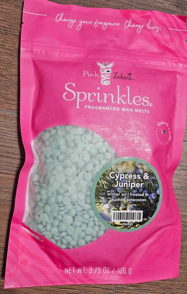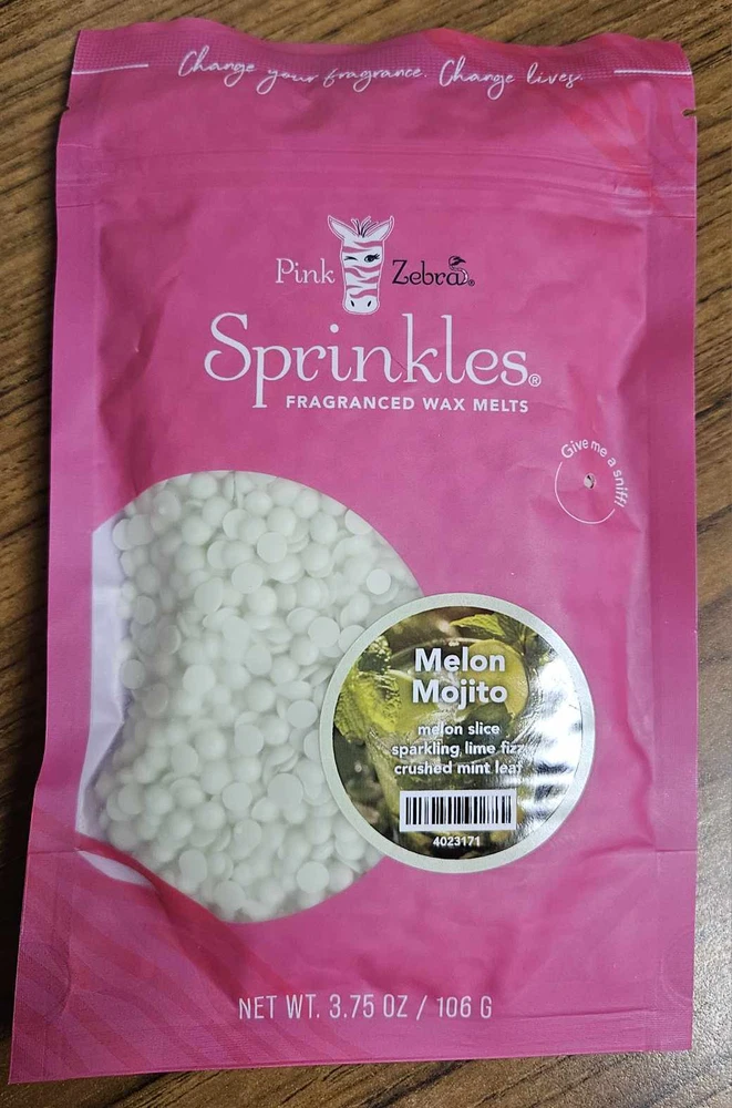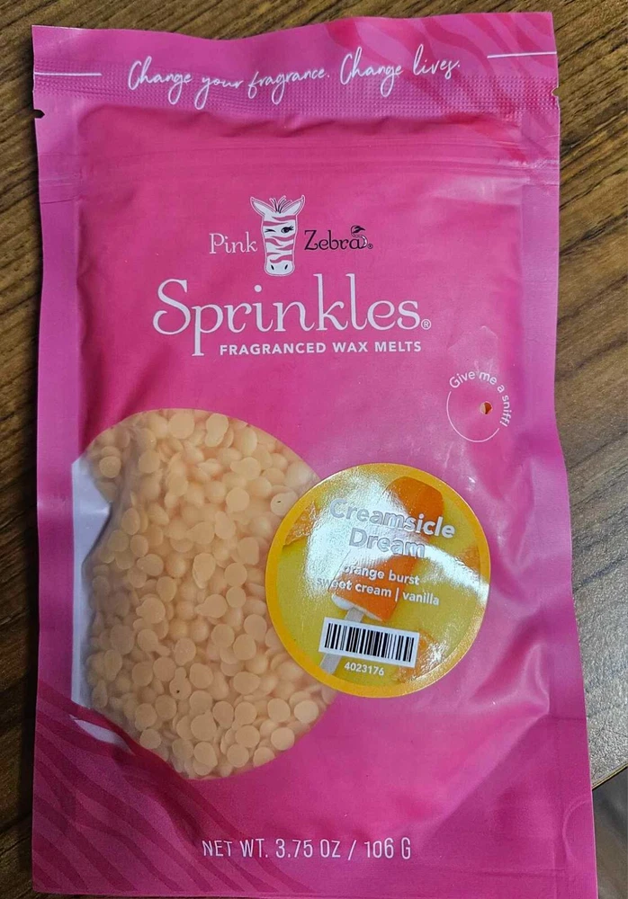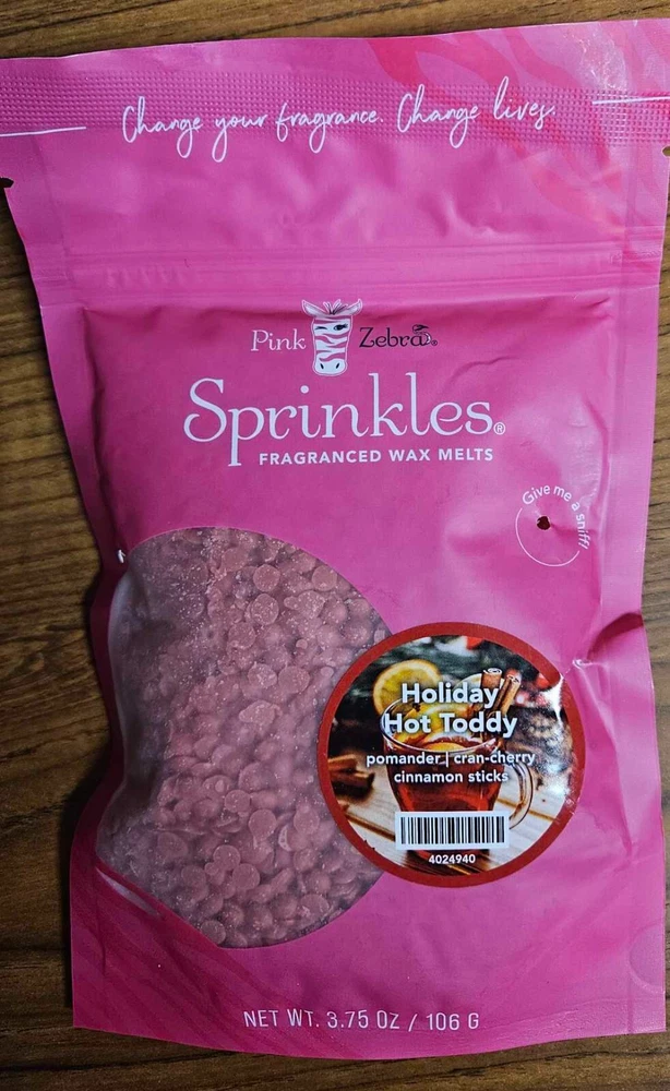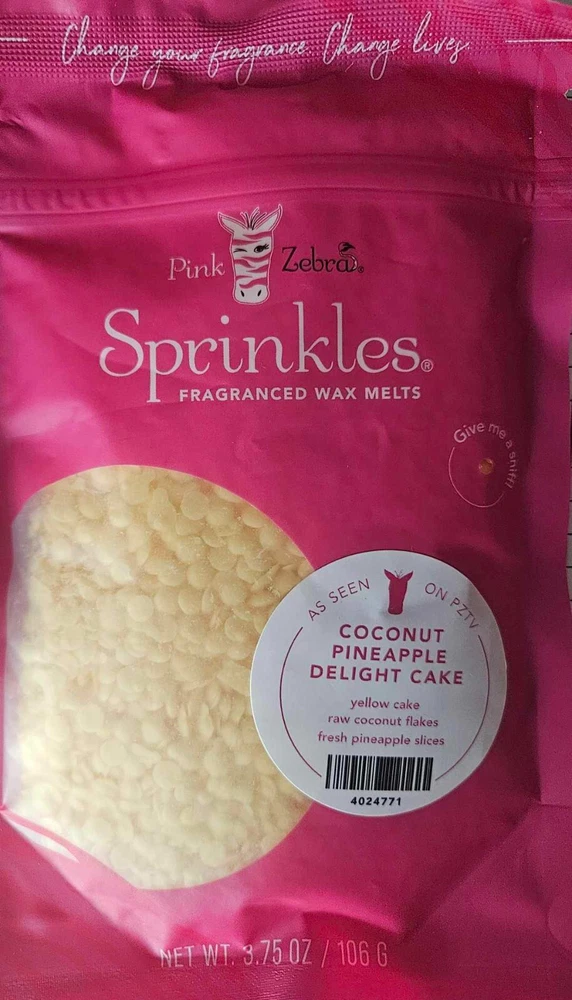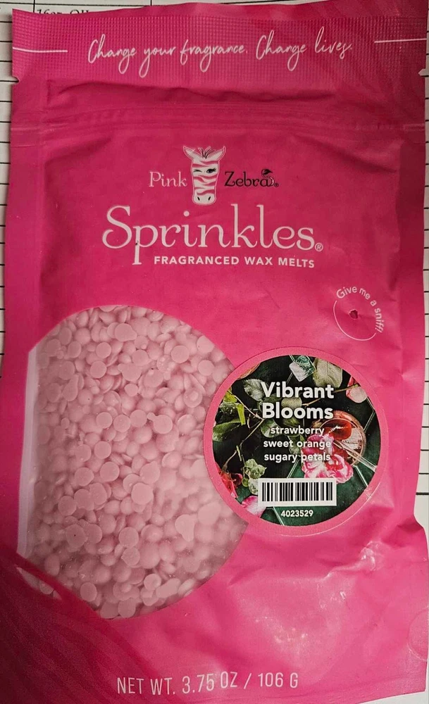 Pink Zebra Soy Wax Sprinkles - Enjoy a variety of different scents available. Each fragrance is in a Factory Sealed Pink Zebra resealable bag and factory pre-filled and weighed to 3.75 - 4 oz. or about 11-12 scoopfuls of wax sprinkles. Bag appearance may vary but all are Factory sealed. These soy wax sprinkles offer an incredible amount of scent in a very tiny package. Just barely cover the bottom of your warmer and fill your home with amazing scents. Any of these wax Sprinkles can be mixed together to form all new Recipe combinations!! No other items pictured will come with your purchase. Discounted shipping with each additional purchase ! Limited quantities of each scent available. No longer a current rep. and selling inventory that is left.